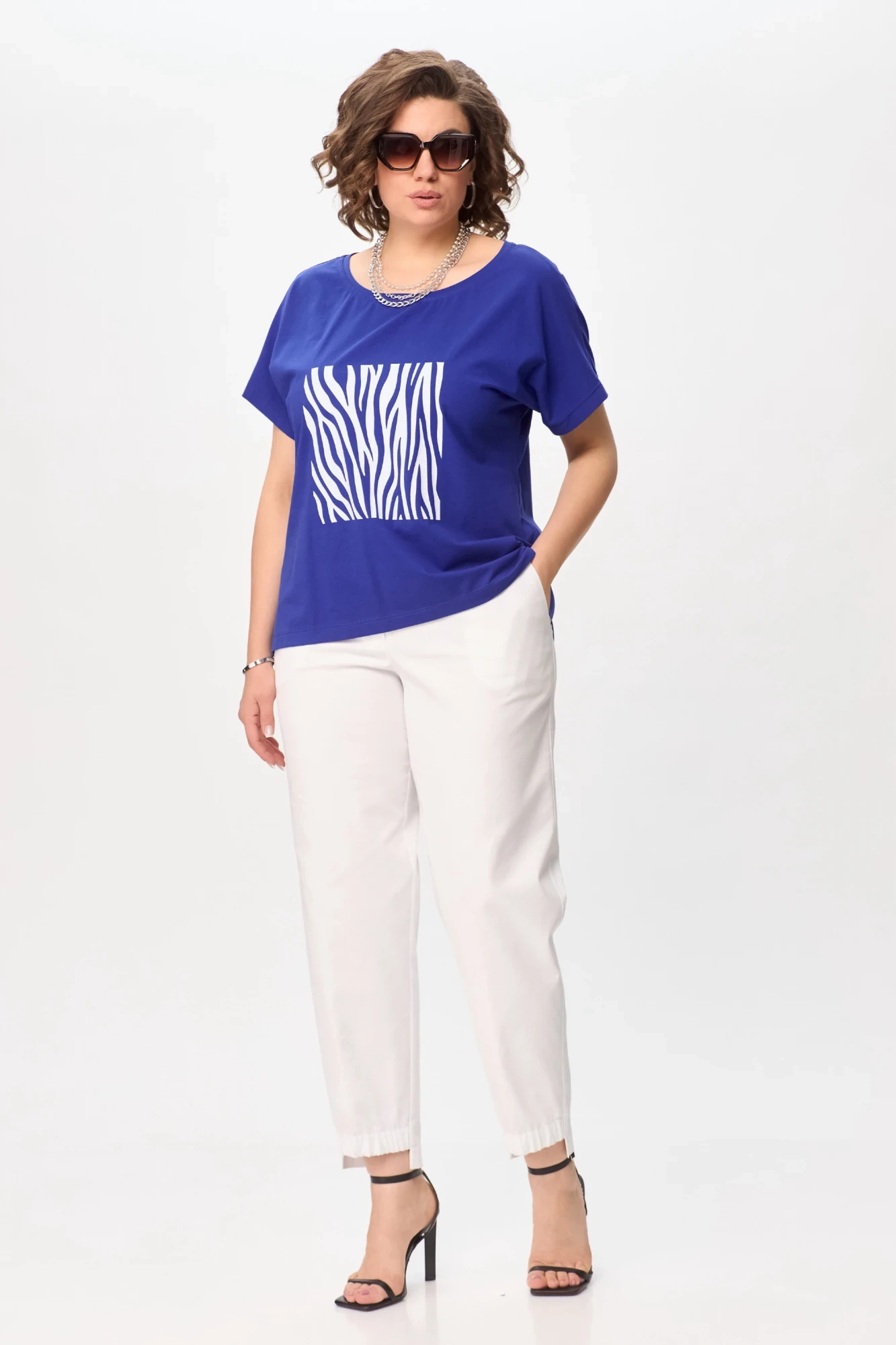 Футболка с принтом свободного кроя со спущенной линией плеча, удлинённой спинкой. Непринуждённый и элегантный дизайн нашей футболки делает её прекрасным выбором для тех, кто следит за модными тенденциями и хочет быть в тренде. Стильно и универсально на все случаи жизни. Не упустите возможность приобрести нашу стильную футболку! Будьте уверены, что наша футболка будет идеальным спутником в Вашем гардеробе.