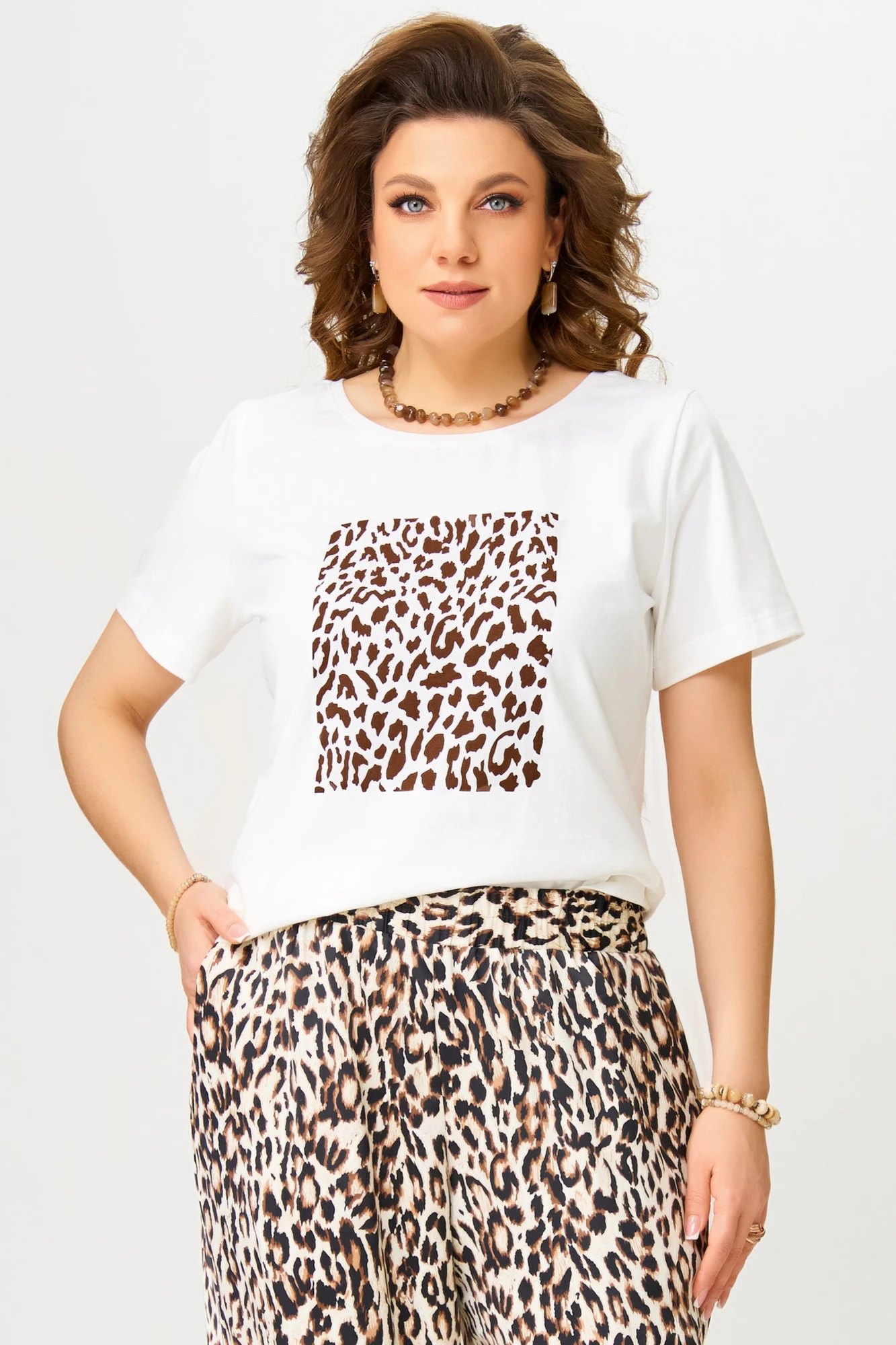 Джемпер "Таина" прилегающего силуэта. По груди вытачка. Горловина обработана планкой. На полочке печать "Леопард". Рукав втачной одношовный. Низ джемпера и рукава обработан распошивалкой.