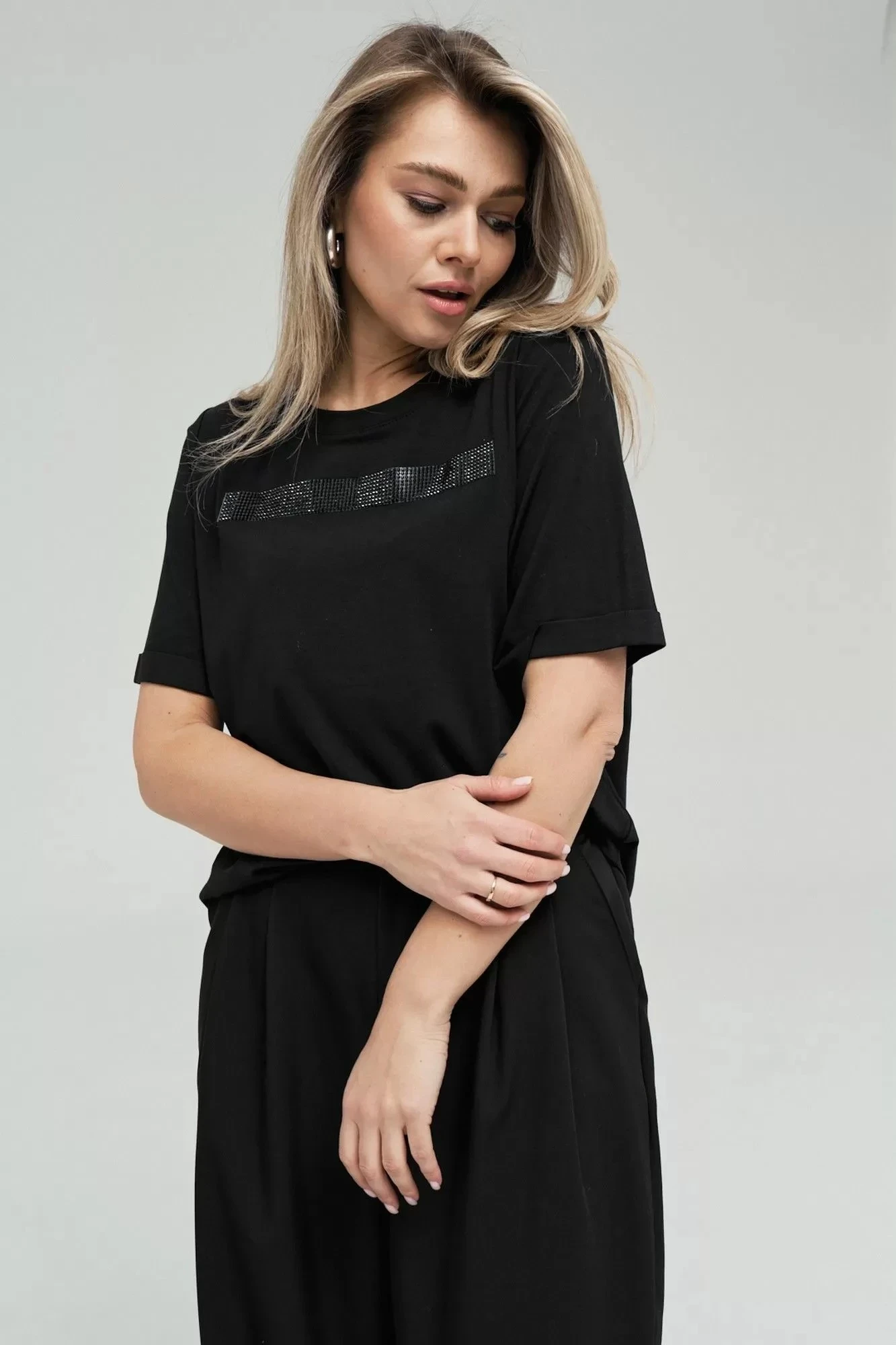 Невероятно комфортная, базовая футболка правильной длины. Ее удобно заправлять и носить навыпуск, отлично сочетается с юбкой, брюками с джинсами, а также можно надеть под жакет или кардиган.