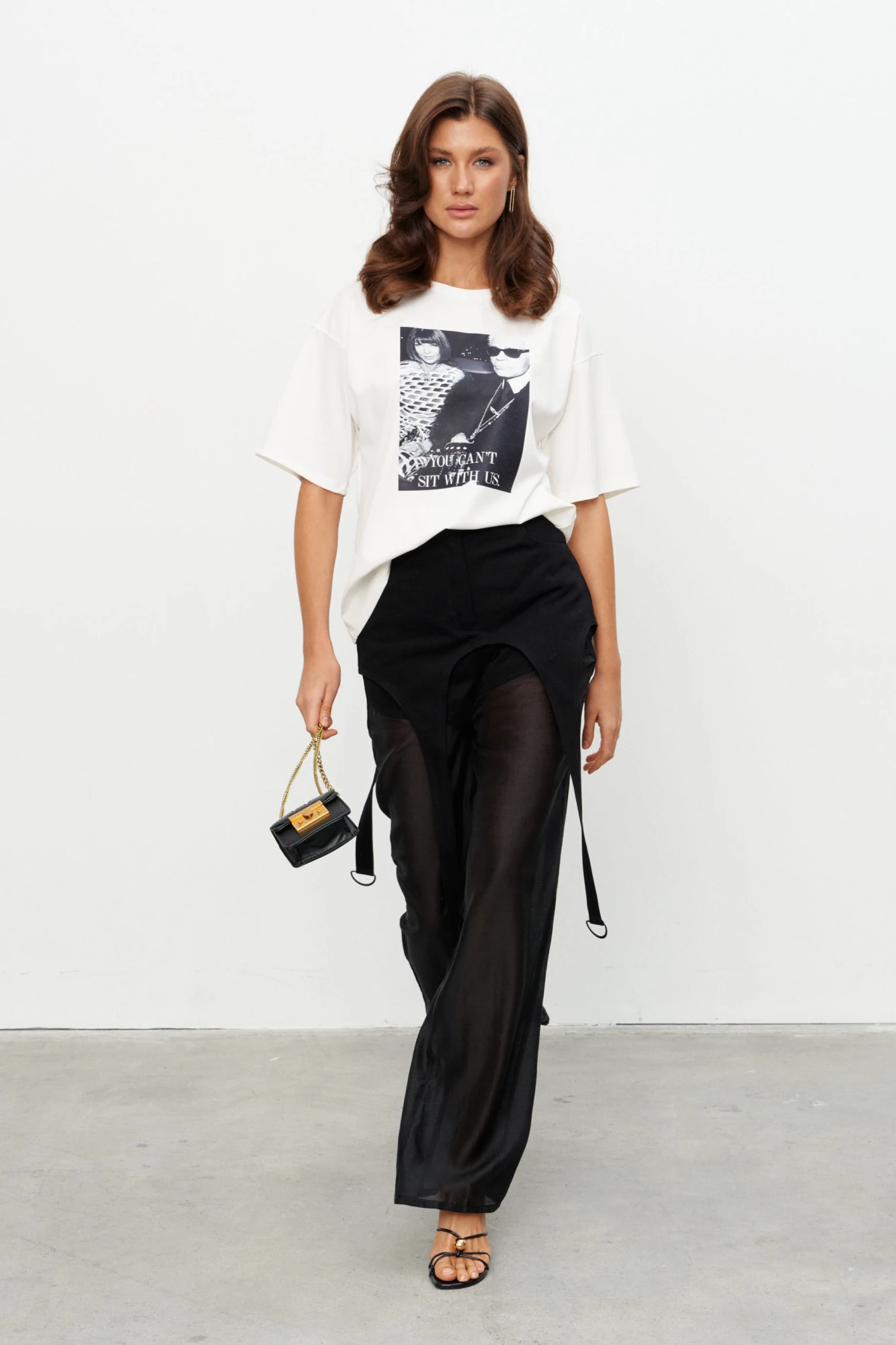 Оверсайз футболка из плотного трикотажа с контрастным принтом «Карл». Линия плеча спущена, горловина отделана эластичной бейкой.