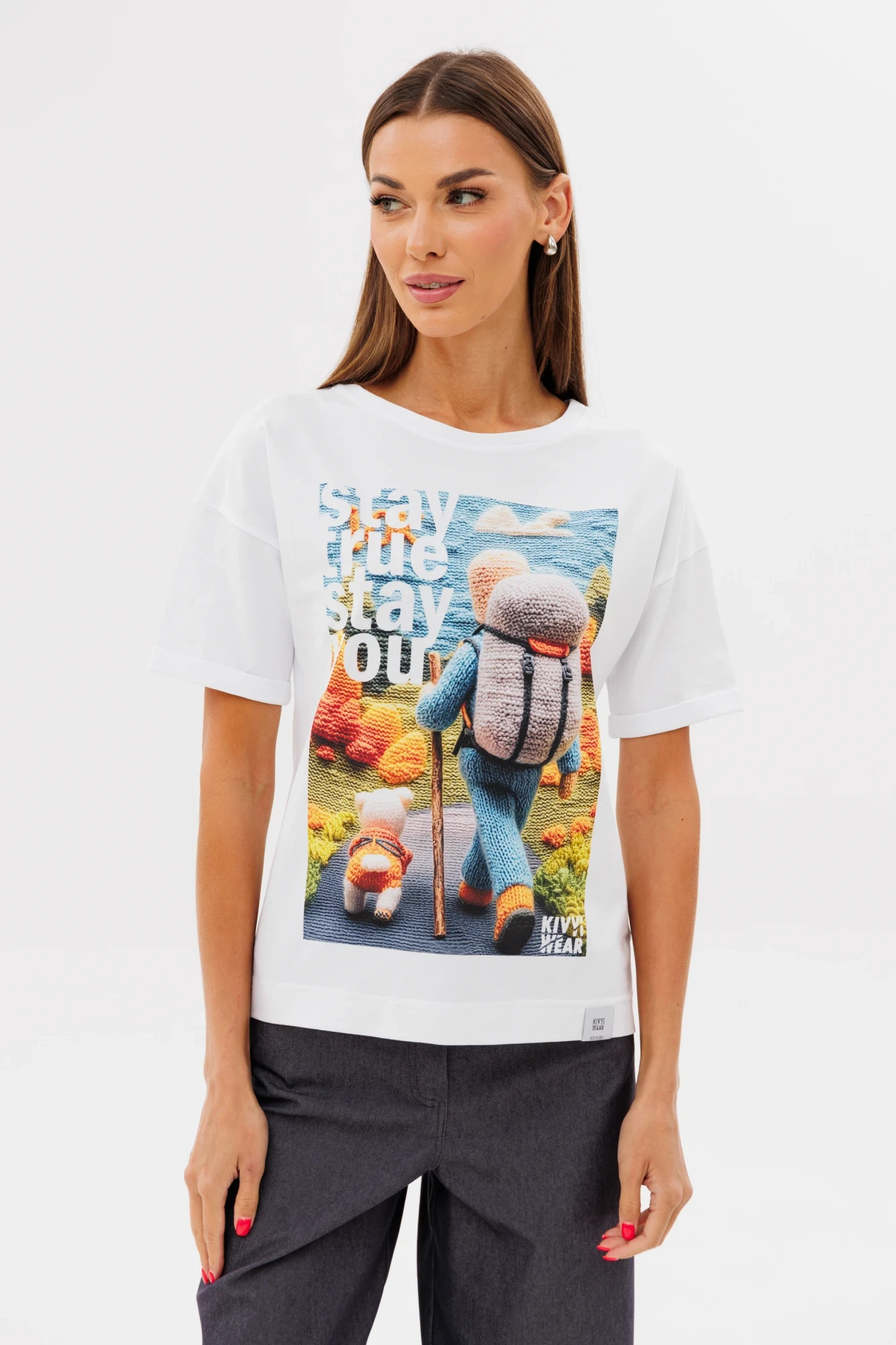 Джемпер свободного кроя. Удлиненный рукав, с подворотом. Принт методом термопереноса, цифровая печать. Ткань кулирная гладь , качество Пенье, плотность 200 г.м2 Только деликатная стирка 30 градусов, не использовать отбеливатели, изделие вывернуть наизнанку, допускается осветление принта после первой стирки на 10%