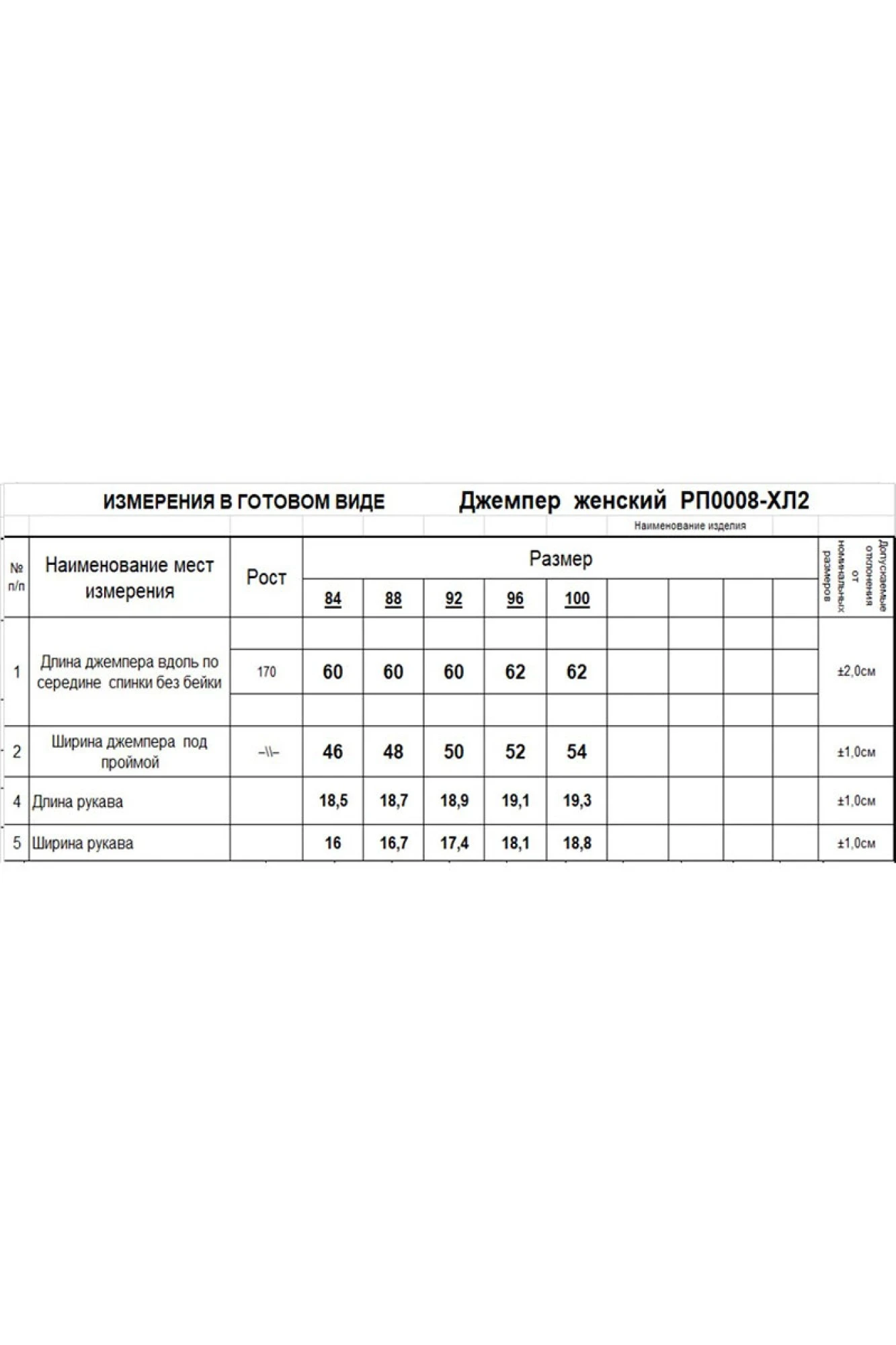 Джемпер полуприлегающего силуэта. Рукав втачной, короткий. Форма горловины - круглая, обработана притачной бейкой из основного полотна. Низ изделия и рукавов обработаны на плоскошовной машине. Джемпер изготовлен из трикотажного полотна, в составе которого хлопок 94%, эластан 6%. По переду джемпера нанесена "печать".