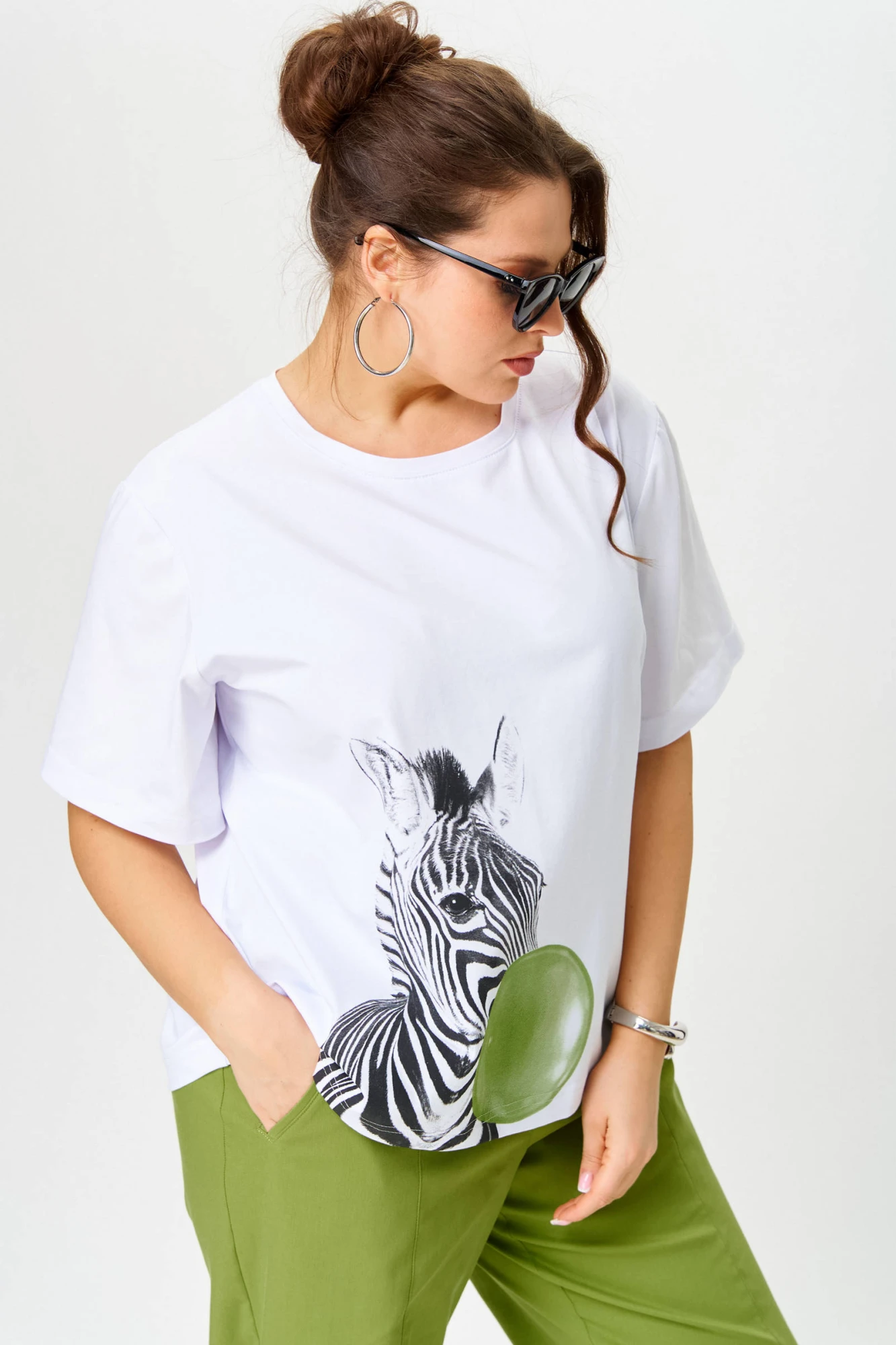 Футболка свободного кроя с круглым вырезом и короткими рукавами. Ткань вискоза.