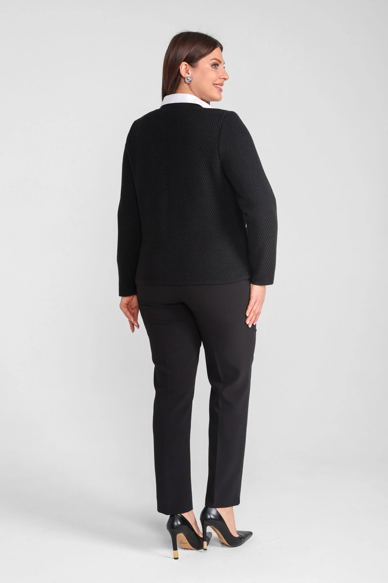 Женский жакет на пуговицах — стильное решение для весны, прохладного лета и осени. Этот вязаный жакет женский выполнен из приятного к телу, плотного, дышащего трикотажа с добавлением хлопка. Материал отлично держит форму, создавая аккуратный силуэт и подчёркивая женственность. Полуприталенный фасон, длина до бедра и V-образный вырез делают жакет универсальным — он подойдёт женщинам с размерами 46–54, для повседневных и офисных образов. Классическая кофта на пуговицах прекрасно сочетается с брюками, юбками, джинсами и базовыми топами. Идеально вписывается в гардероб .Жакет трикотажный женский станет удачным выбором на каждый день — на работу, прогулку, в поездку или на встречу. Он подойдёт для невысоких и высоких женщин, подчёркивая фигуру и оставаясь при этом комфортным. Если вы ищете вязаную кофту женскую демисезонную, которая подойдёт и для офиса, и для прохладных вечеров летом — обратите внимание на эту модель.