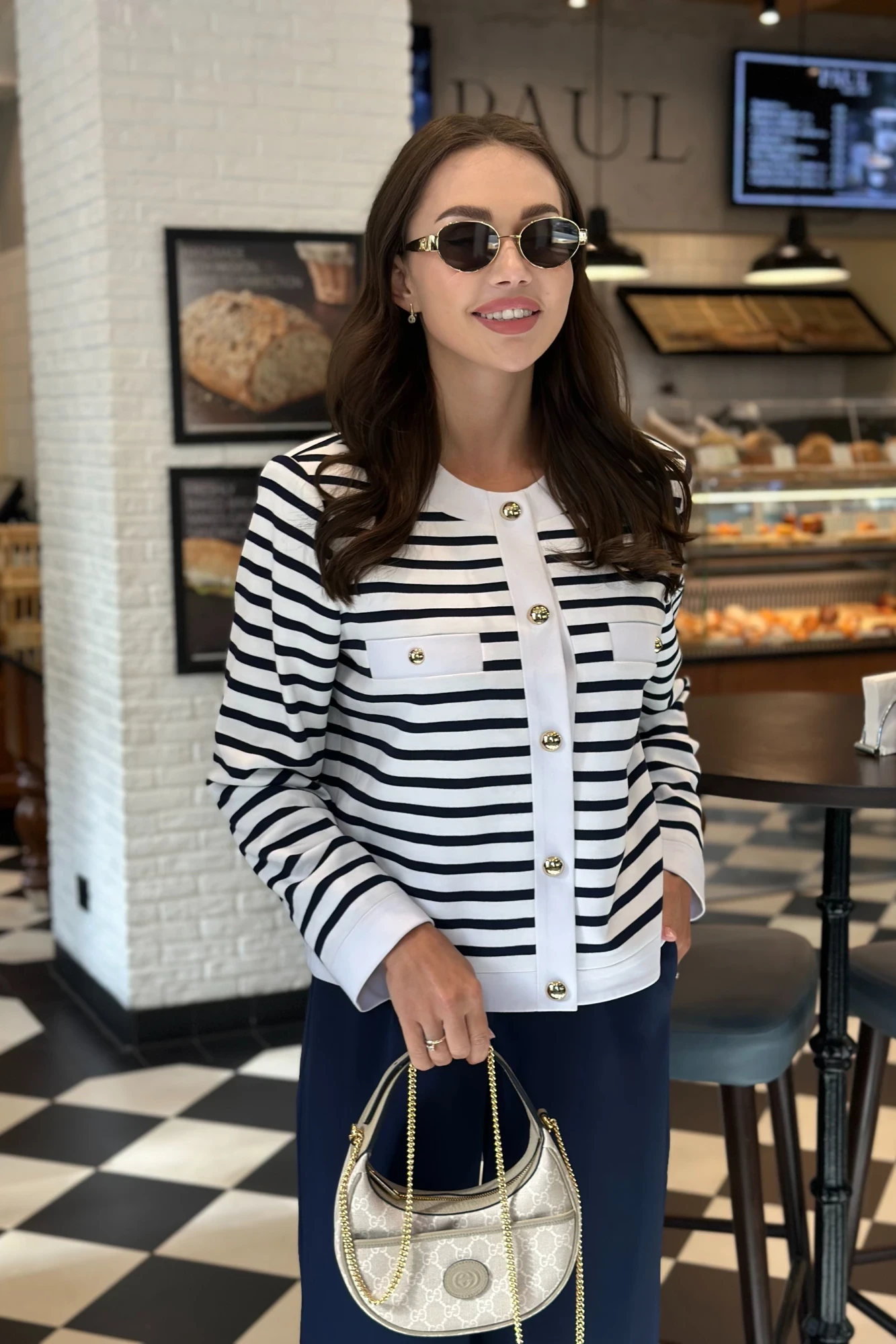 Жакет женский прямого силуэта, на подкладке, застегивающийся на кнопки. По переду в области груди расположены прорезные нефункциональные карманы с листочкой из ткани-компаньона. Спинка цельнокроеная. Плечо спущено. Рукав длинный, одношовный. Горловина округлой формы. Обтачка горловины, низ жакета, манжета рукава и планки переда выполнены из ткани-компаньона.Цвет материала может отличаться по тону в зависимости от настроек вашего монитора!