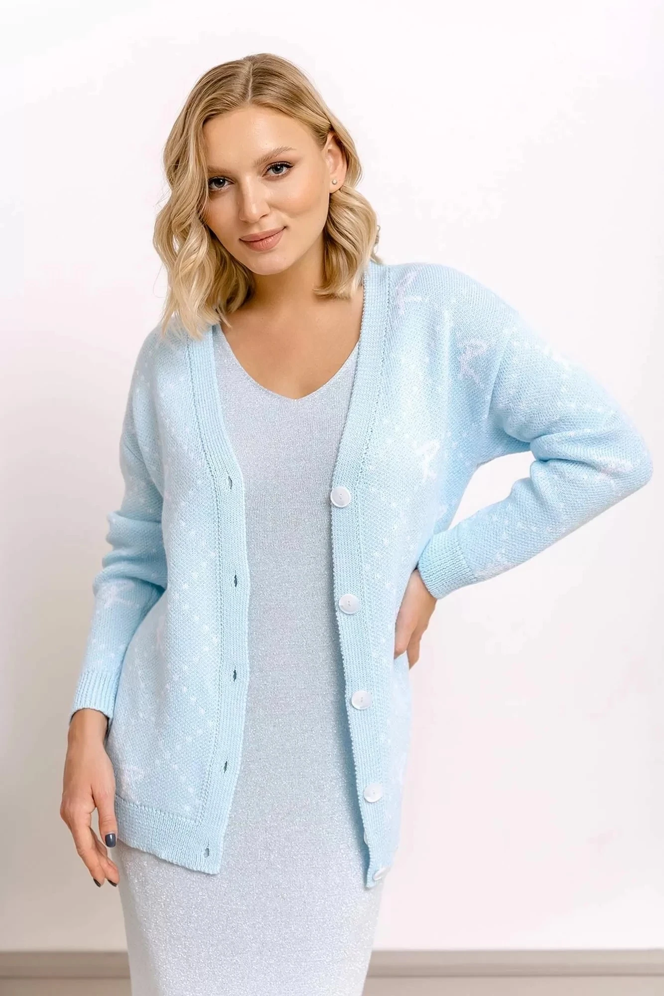 Кардиган Romgil РВ0017-ХЛ2 бледно-голубой, белый
