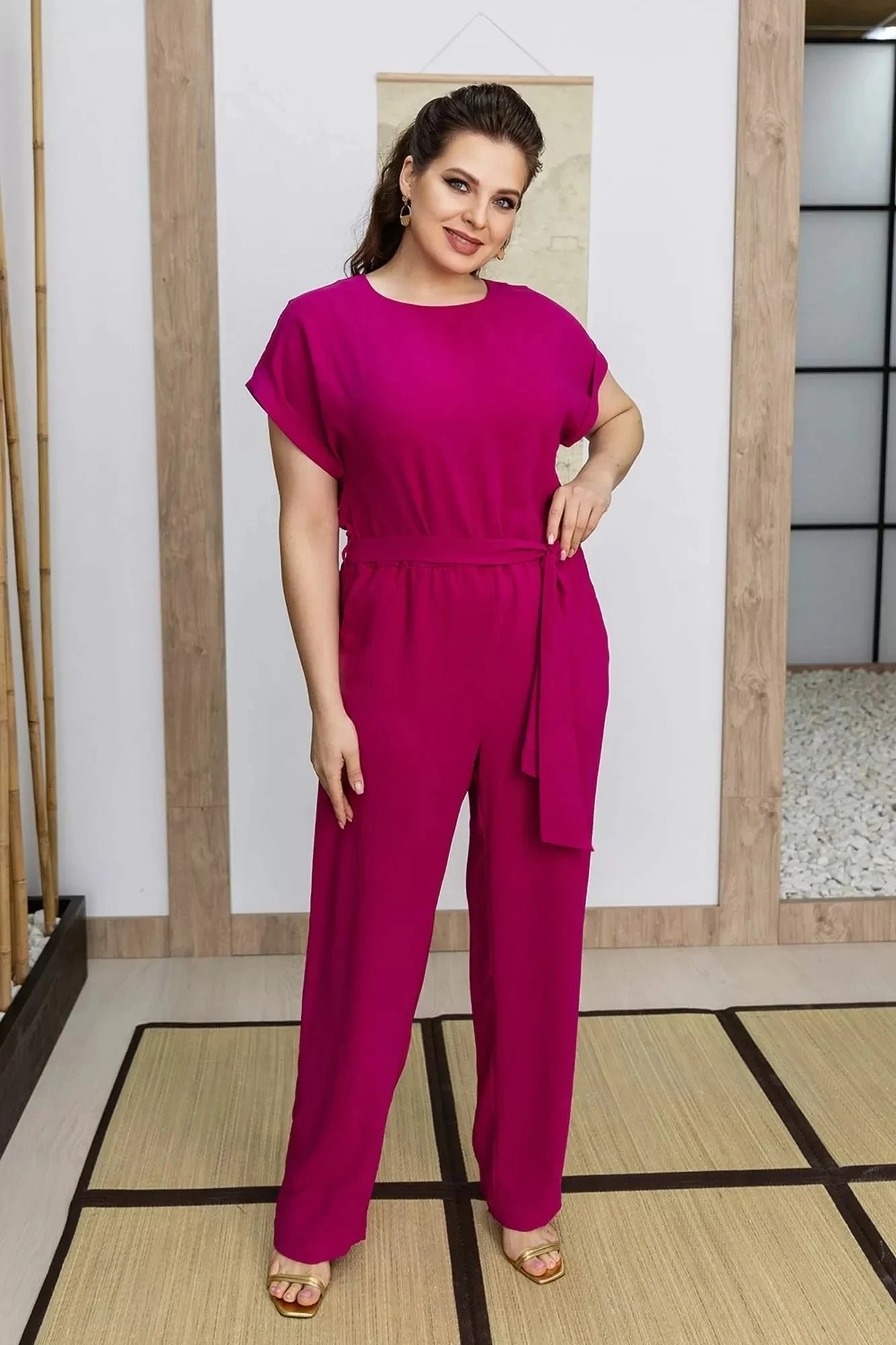 Комбинезон полуприлегающего силуэта с коротким рукавом. Гор-ловина