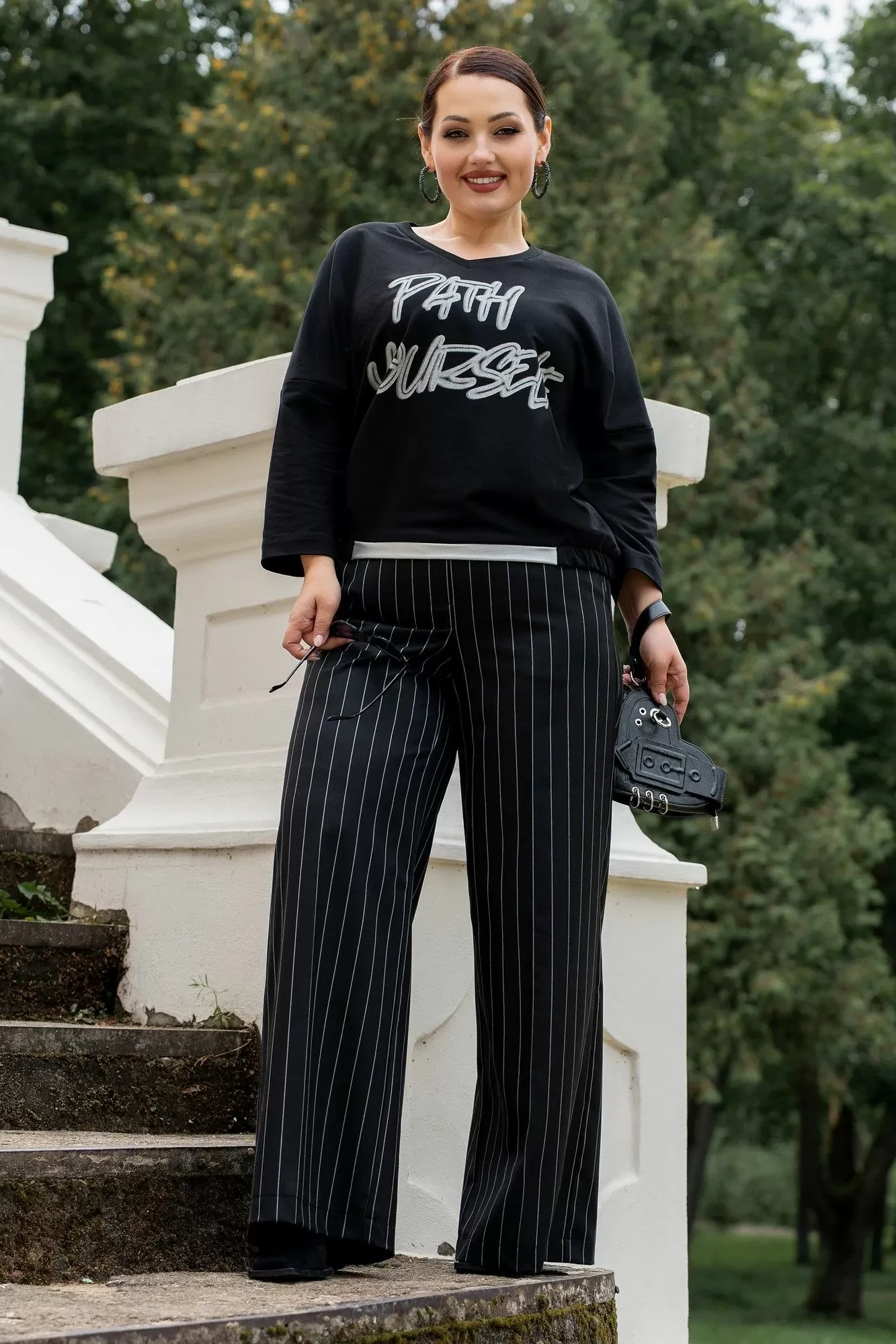 Брючный костюм ADARIN А37 черный-серебро/полоска