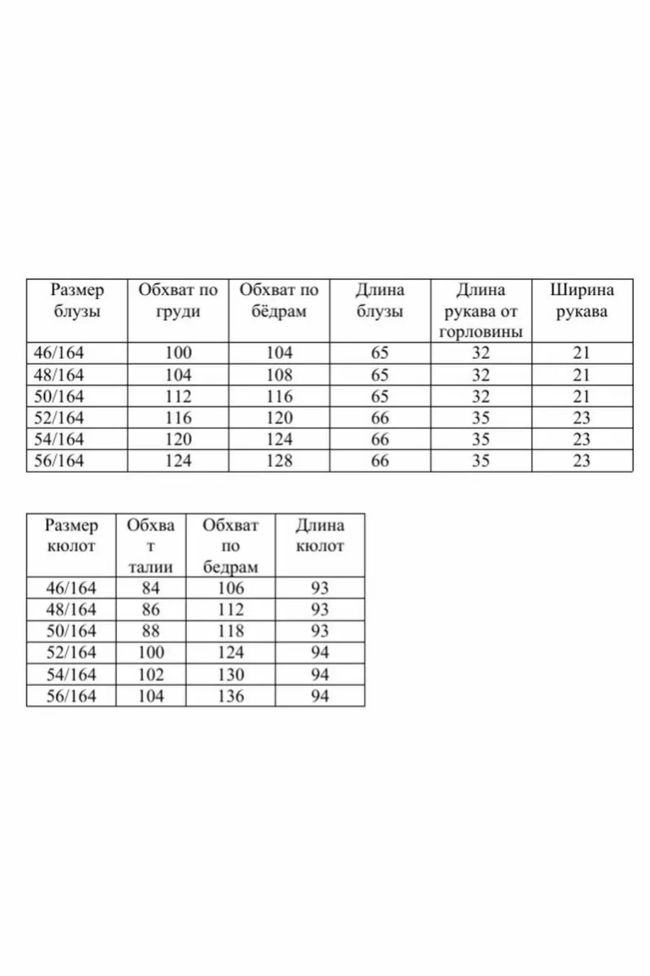 Стильный женский комплект, состоит из блузки и кюлот. Блуза прямого силуэта, выполнена из натуральной ткани с добавлением хлопка, льна и вискозы (мнется не сильно, за счет добавления вискозы), горловина блузки с воротником-стойкой и небольшим V-образным вырезом. Рукав блузки цельнокроеный с манжетой. Кюлоты выполнены из натуральной льняной ткани с добавляем хлопка и вискозы. Кюлоты на поясе с застежкой на пуговицы и молнию, в боковых швах функциональные карманы. В комплект входит съемный пояс из основной ткани. Модель удобная и практичная, отлично подойдет для ежедневной носки в жаркое время, вы будете выглядеть неотразимо.