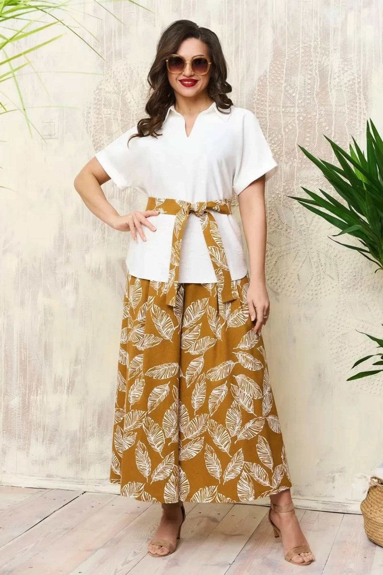 Брючный костюм AGATTI 5111 белая/горчица двойка
