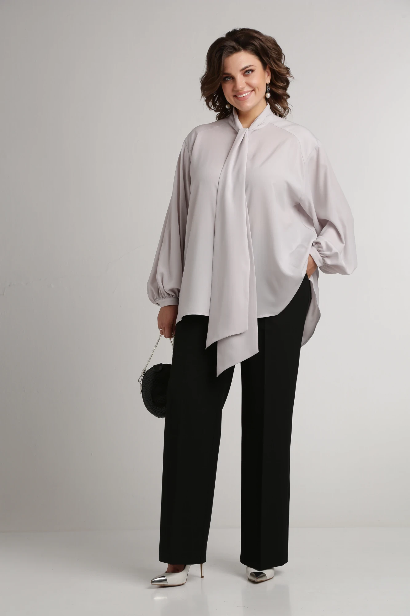 Универсальный комплект состоит из блузки и брюк. Блузка свободного силуэта с воротником аскот (воротник-бант) станет ультрамодным дополнением Вашего гардероба, а пышные рукава зачаровывают своей легкостью и воздушность силуэта. По переду центральная застежка на петли и пуговицы и спущенной линией плеча. Рукав втачной, одношовный с манжетой по низу. По спинке кокетка. Брюки прямого силуэта с заутюженными стрелками и притачным поясом. Для максимально комфортной посадки по бокам пояса вставлена эластичная резинка. Застёжка на молнию с гульфиком и пуговица по поясу. По переду в боковых швах карманы. Задние половинки брюк с талиевыми вытачками.