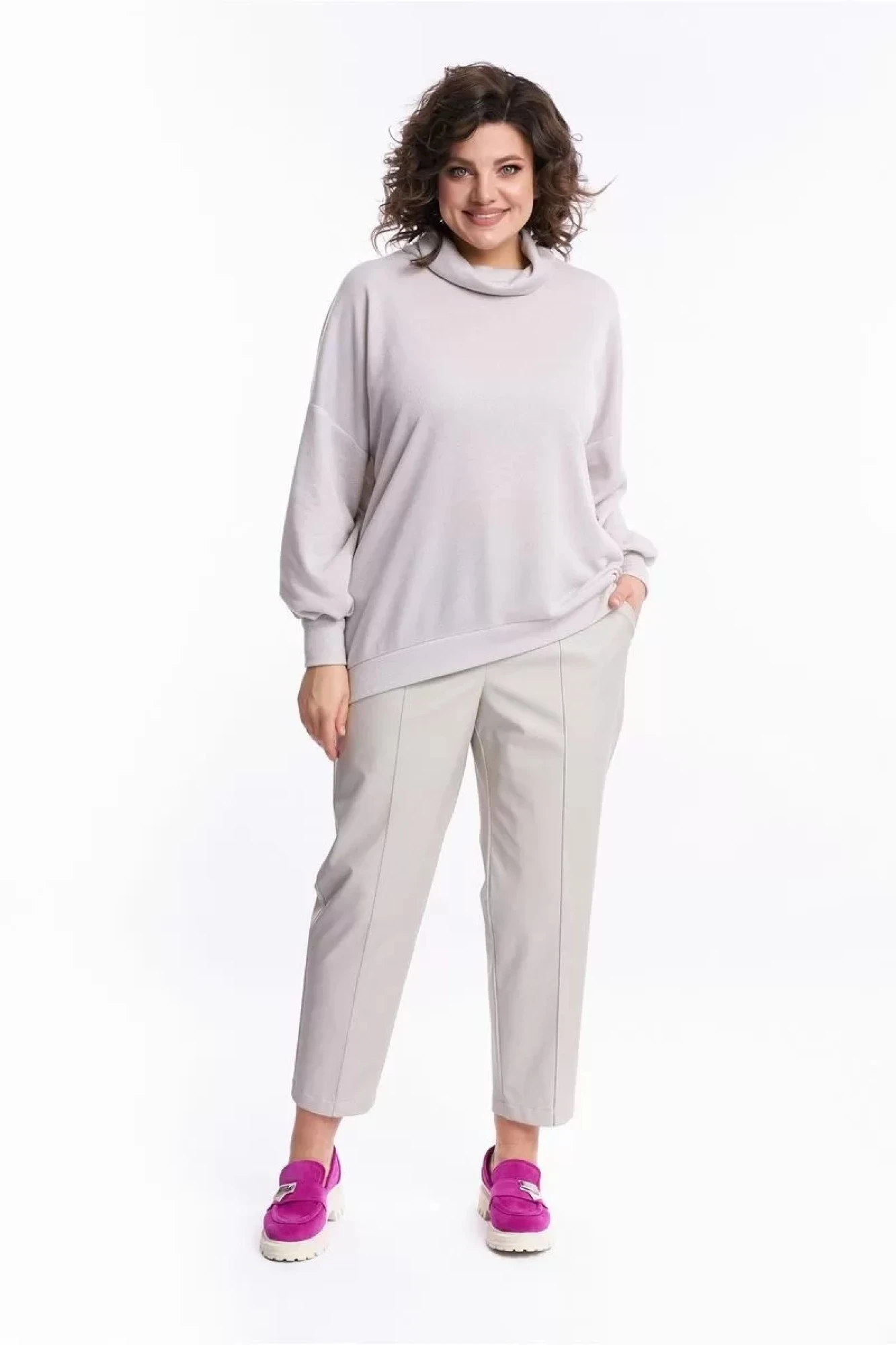 Длина джемпера по спинке 70 см, длина рукава от горловины 73 см. Длина брюк по боковому шву с поясом 96 см. Параметры модели в 50 размере: ОГ 122см, ОТ 116см, ОБ 124см, ОТ брюк 92см, ОБ брюк 110см. Параметры модели в 52 размере: ОГ 126см, ОТ 120см, ОБ 128см, ОТ брюк 96см, ОБ брюк 114см. Параметры модели в 54 размере: ОГ 130см, ОТ 124см, ОБ 132см, ОТ брюк 100см, ОБ брюк 118см.