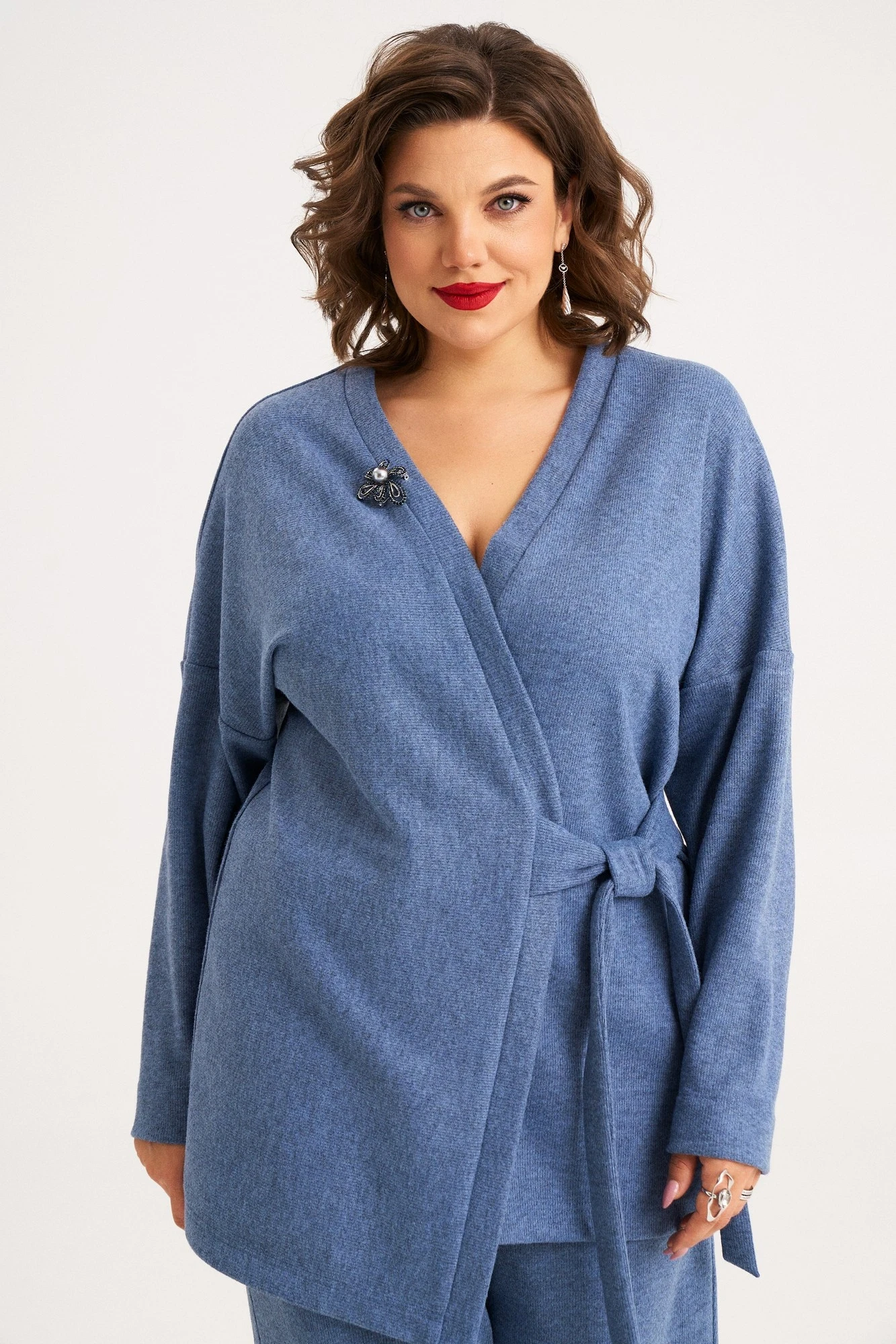 Модный, свободный комплект станет идеальным базовым предметом гардероба. Выполненный из мягкого трикотажного полотна. Джемпер прямого силуэтасо спущенной линией плеча. Рукав длиный. По горловине спинки и переда - планки. По талии джемпер завязывается на пояс. Брюки свободные, прямые. По линии талии притачной пояс на резинке. В боковых швах внутренние карманы.