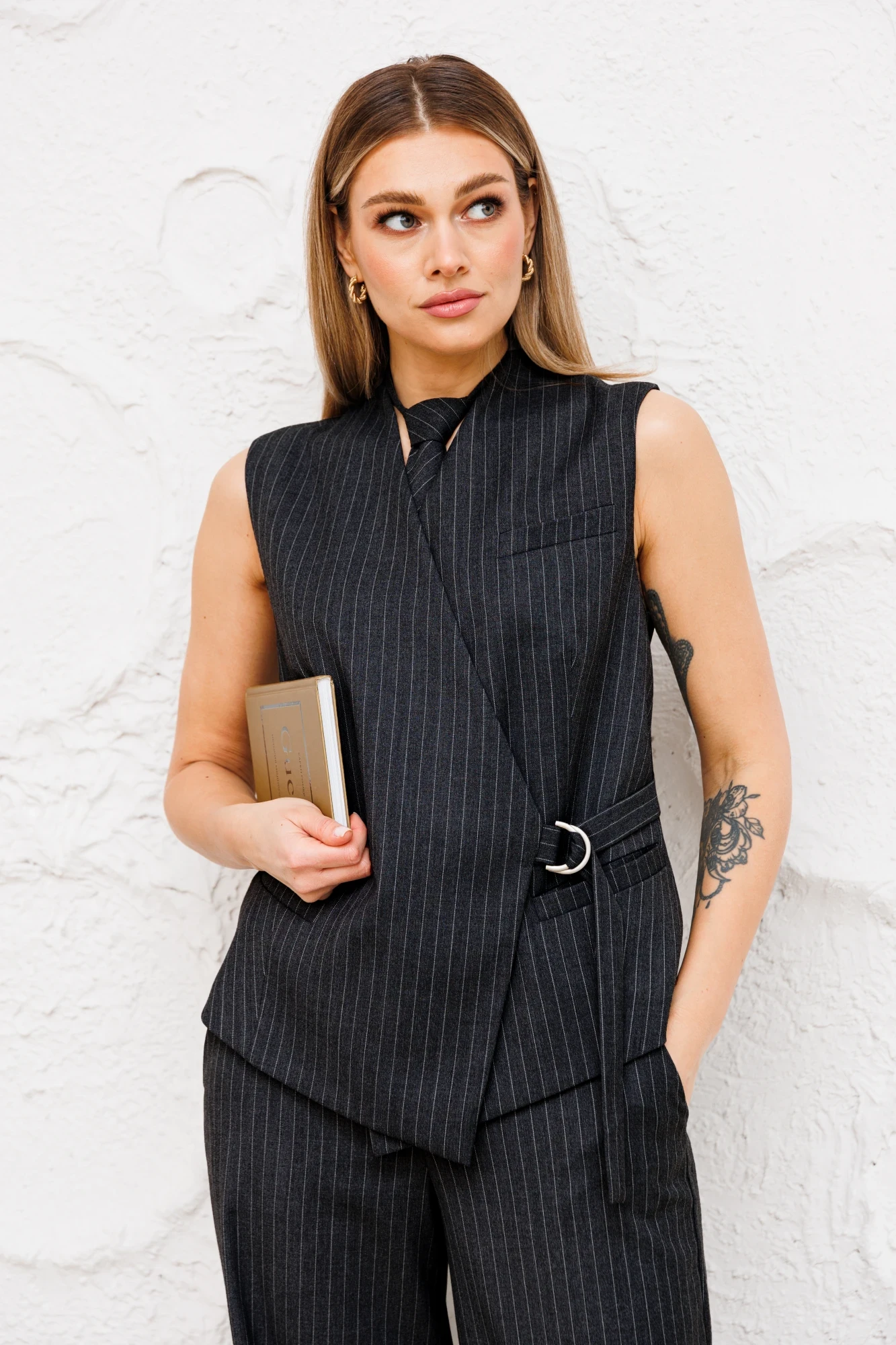 Брючный костюм AmberaStyle 2059 ЧЕРНЫЙ ПОЛОСКА тройка