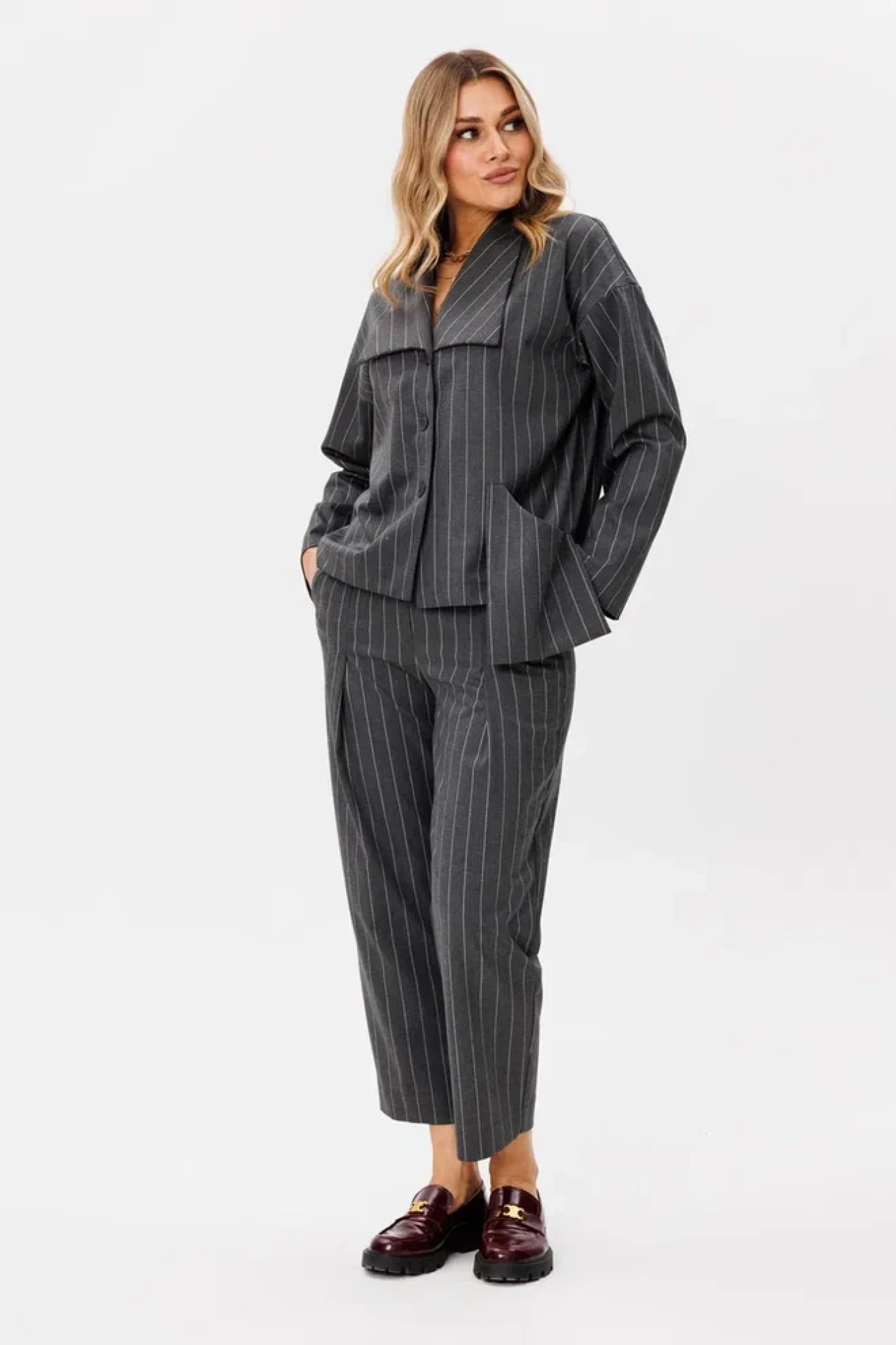 Брючный костюм AmberaStyle 2098 серый полоска двойка
