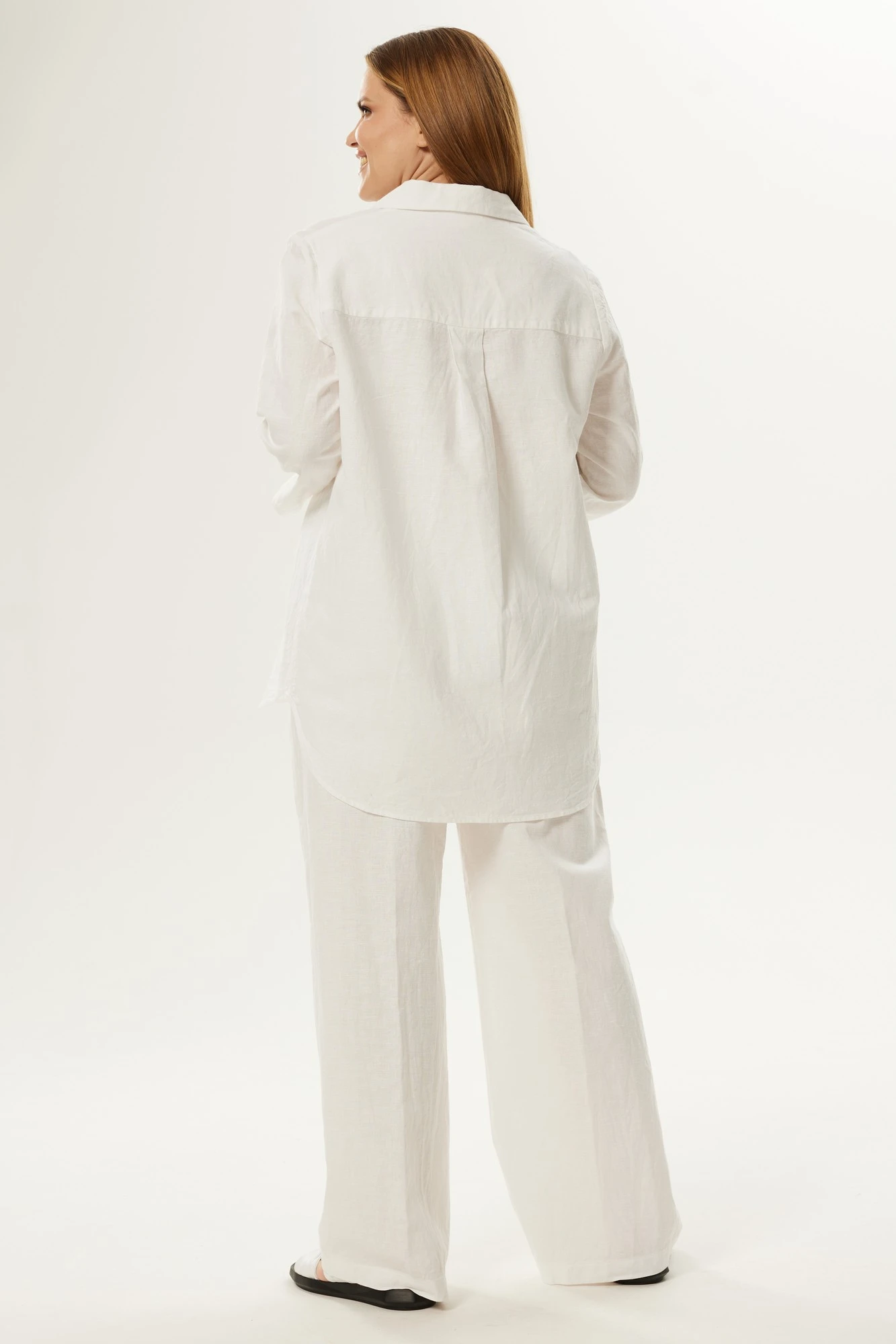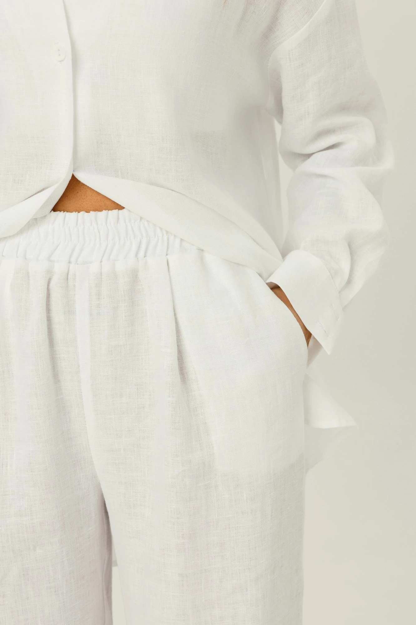 "Стильный льняной oversize-костюм AMIE в свободном стиле, состоящий из рубашки и брюк.