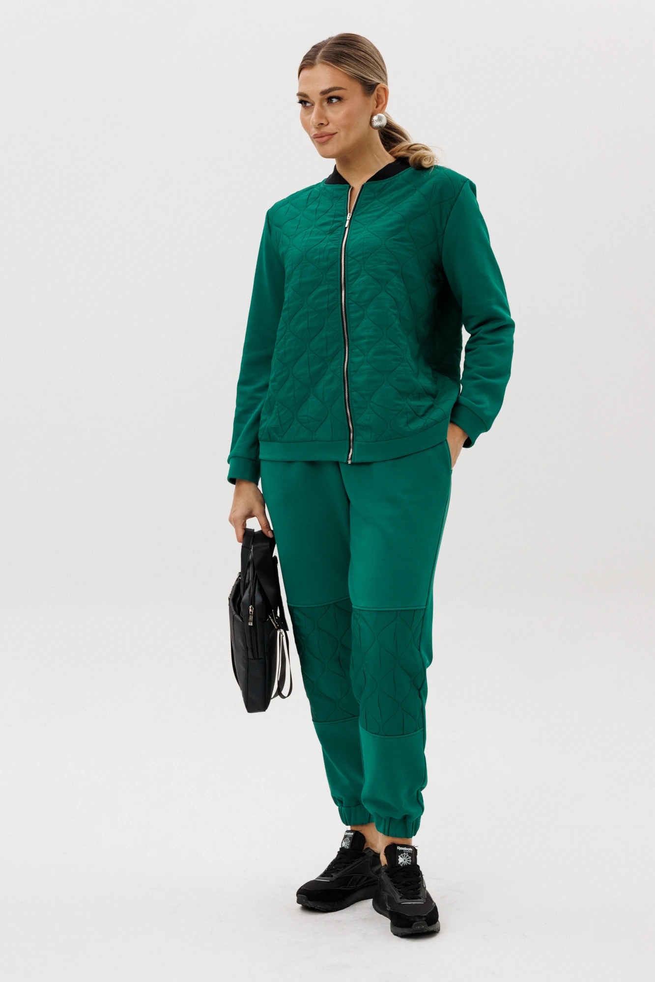 Стильный женский спортивный костюм из стежки и трикотажного футера от Anastasia станет незаменимой частью гардероба для активного отдыха и повседневной носки каждой модницы. Выполнен из высококачественного футера трехнитка и стильной стеганной ткани. Состоит из полуприталенного джемпера и спортивных брюк - джоггеров с высокой посадкой и боковыми карманами. Материал теплый и приятный, отлично подойдет для прохладной летней погоды, а прохладными осенними вечерами заменит собой куртку ветровку или толстовку. Эластичные манжеты на рукавах и по низу брючин, а также мягкая резинка на поясе обеспечивают комфортную посадку и носку и не будут стеснять движения. Наслаждаться спортивными активностями будет комфортно. Комбинирование стеганной ткани и трикотажа создает гармоничный индивидуальный образ. Костюм спортшик подходят для различных видов деятельности: от утренних пробежек до поездок по городу на велосипеде или встреч с друзьями в кафе. Подойдет как для взрослых женщин и девушек, в том числе кто предпочитает большие размеры, так и для девочек подростков. Ткань долговечная, простая в уходе, не мнется и не скатывается, а оригинальный дизайн - стежка позволит всегда оставаться в центре внимания! Независимо от того, занимаетесь ли вы спортом, ходите в такой одежде дома или просто хотите выглядеть стильно и модно - наш костюмчик станет верным спутником. Почувствуйте себя уверенно и комфортно с стильным костюмом от "Анастасия"! Комплект без подклада, не на флисе, без начеса, ткань не просвечивает. Длина джемпера по спинке: (60)-61см, (62-66)-63см. Длина рукава: (60)-63см, (62-66)-64см. Длина брюк: (60)-99см, (62-66)-102см
