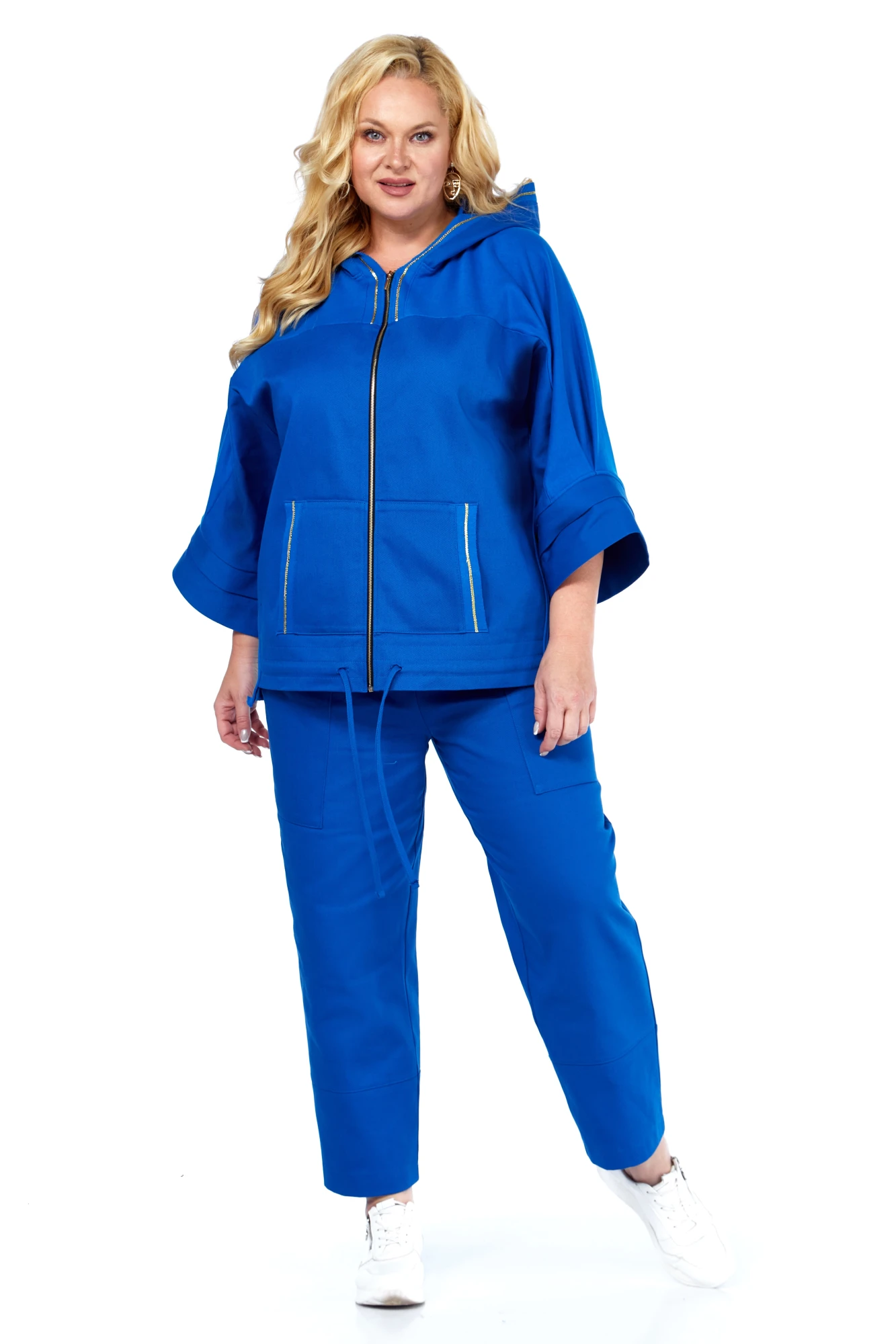 Оригинальный комплект женский 2-х пердментый (кофта -зипка и брюки) из двух видов ткани: верх- трикотажное полотно и джинс, брюки-джинсовое полотно от бренда Anastasia, идеальный для любого случая. Этот костюм сочетает в себе элегантность и комфорт, что делает его подходящим как для повседновной носки, так и для праздничных мероприятий. Нежный и теплый материал делает его отличным выбором для осенне-зимнего периода, при этом он легкий, поэтому его можно носить и в прохладную погоду летом . Кофта оверсайз на молнии с капюшоном прямого силуэта. Рукав 3/4 длиный с двойной манжетой. По полочке идут накладные карманы, по низу -кулиска. В качестве декора по капюшону и накладным карманам - отделочная тесьма. Брюки -бананы 7/8 , пояс на резинке. По передней и задней половинкам идет отрезная кокетка и по низу брюк- подрезы. Карманы накладные спереди.Плотная, натуральная джинсовая ткань визуально скрывает любые недостатки. Отдельный части костюма легко будут сочетаться с вещами из Вашего гардероба. Модель можно отнести к стилю спортивный кэжуал, оверсайз, спортивный шик. Костюм можно носить с босоножками, кроссовками, высокими сапогами или ботинками Хороших покупок от «Анастасия». Длина кофты (по спинке):(50-54)- 62см, (56-60)-66 см. Длина рукава с манжетой: (50-54)-55см, (56-60)-57 см. Длина брюк: (50-54)-87 см, (56-60)-89 см