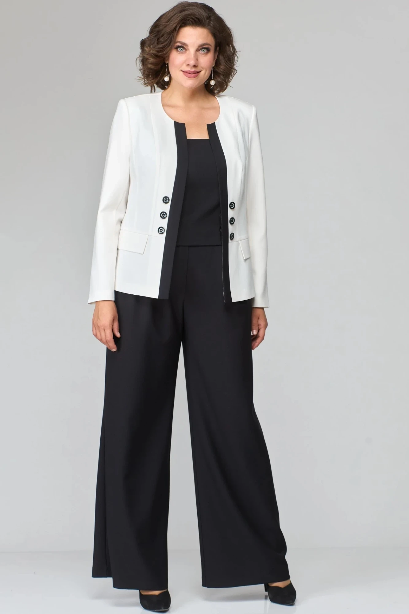 Брючный костюм Anastasia Mak 1123 чёрно-белый тройка