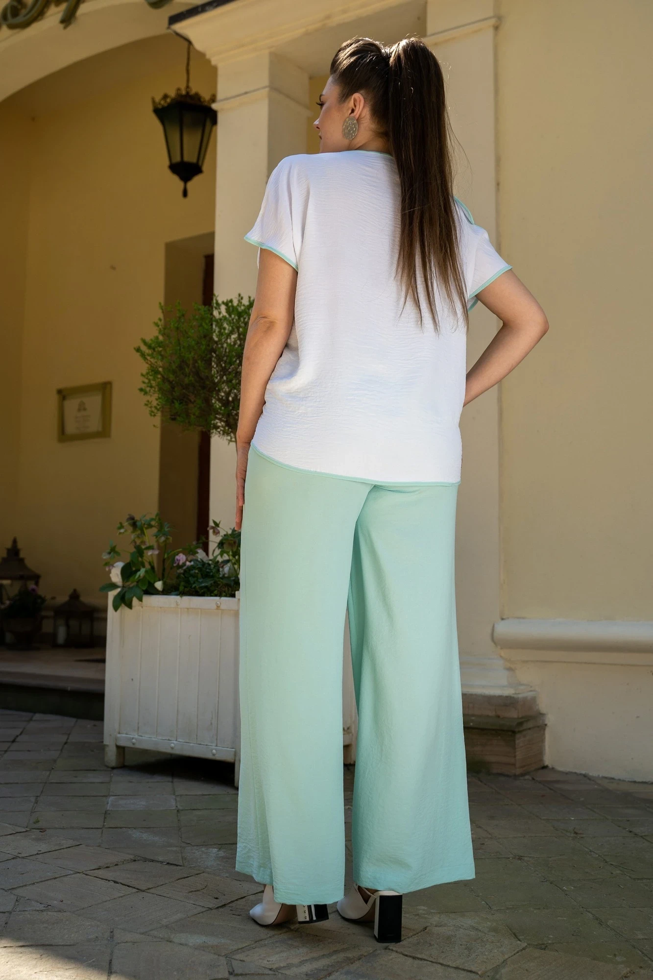 Брючный костюм ANDINA 915-1 белый/мята двойка