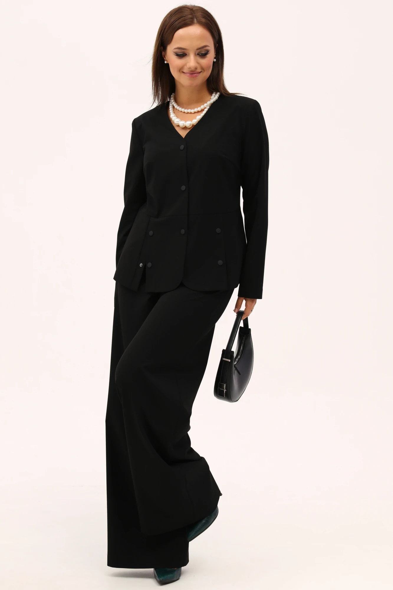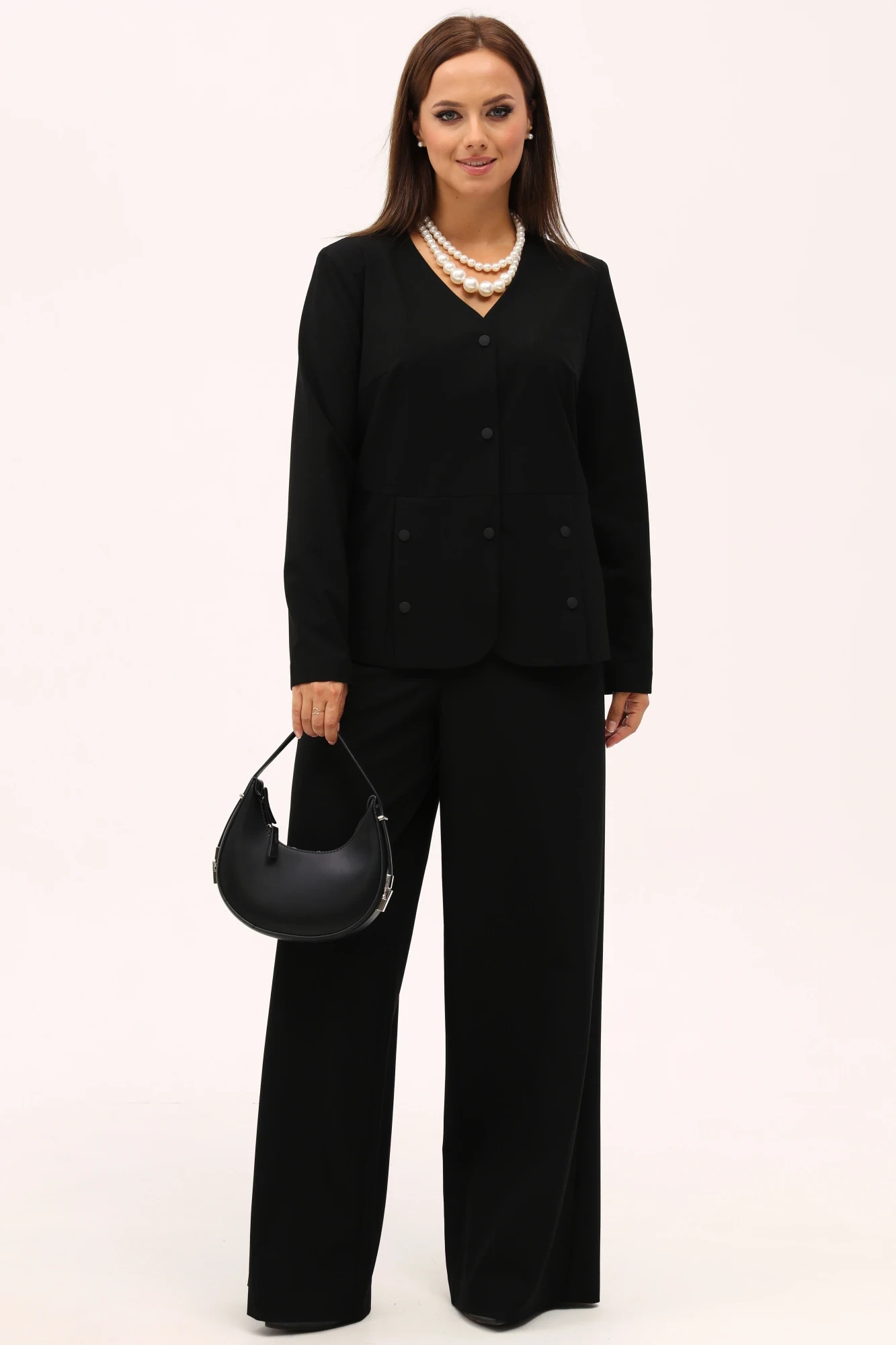 "Комфортный брючный комплект из костюмно-плательной ткани, состоящий из жакета и брюк. Комплект будет идеально смотреться и с классическими туфлями, и с лоферами. Подойдет для работы и офиса, а также повседневной носки.