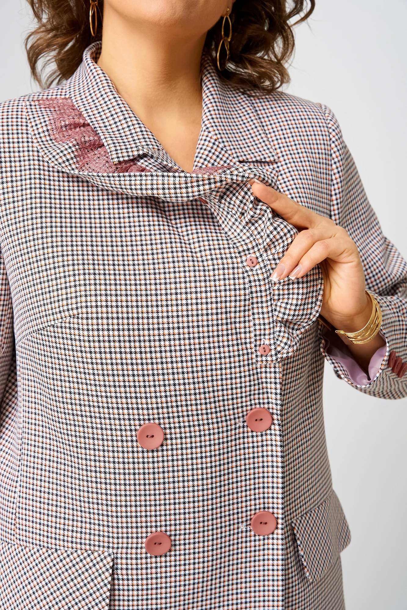 Стильный брючный комплект-тройка с удлиненным жакетом в клетку станет отличным дополнением Вашего осеннего гардероба.