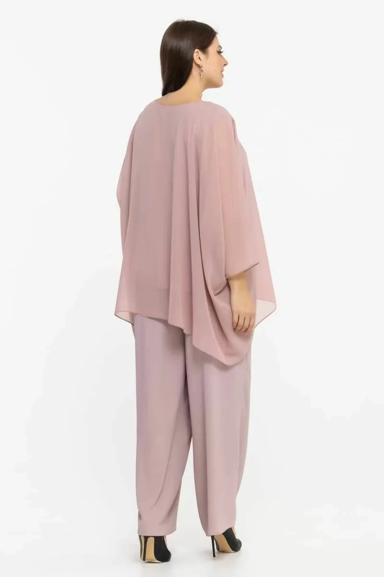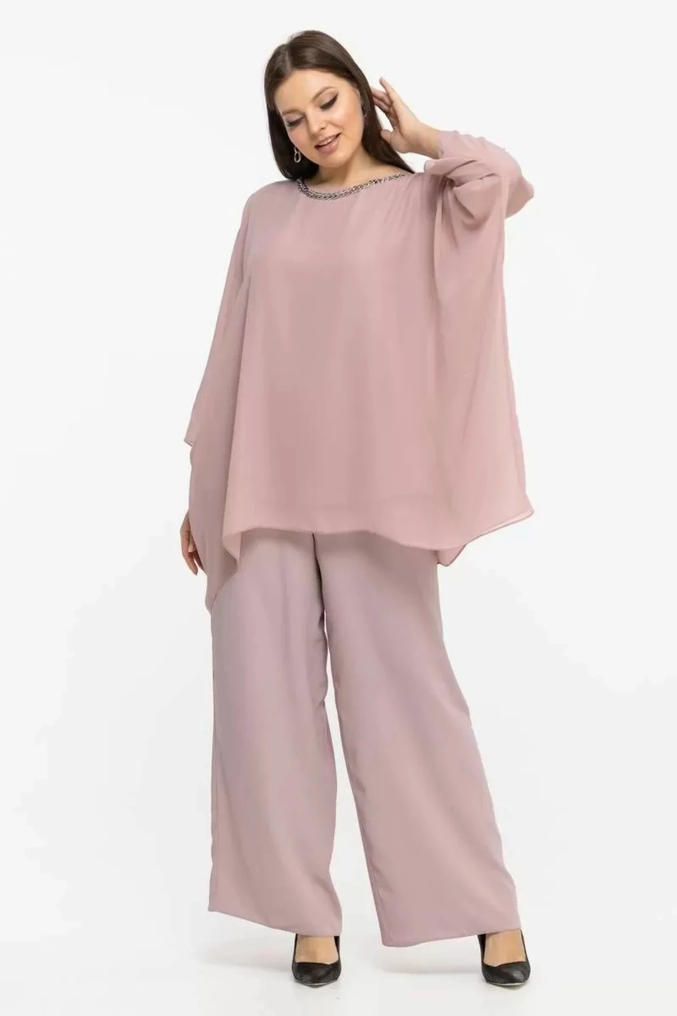 Великолепный брючный костюм из шифона. Свободного кроя туника на трикотажном подкладе, украшена декоративной цепью. Струящиеся широкие брюки "палаццо" из однотонного текстиля на мягкой резинке. Брюки средней посадки, не сковывают движений, очень комфортные, идеально смотрятся под любой верх.