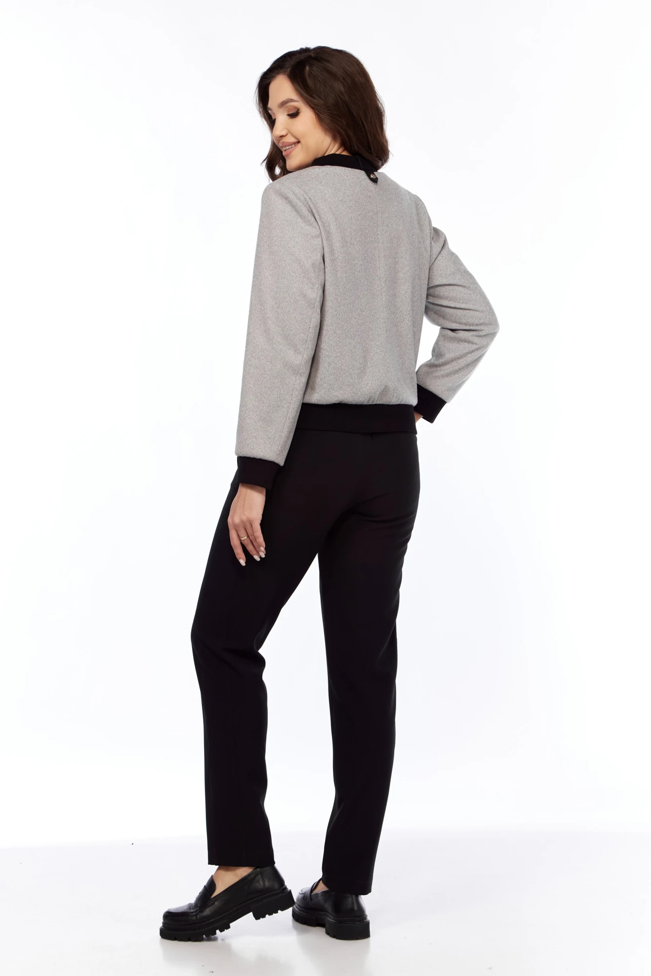 Комплект женский состоит из бомбера, выполненного из трикотажного полотна в рисунок "ёлочка" и довяза ,и брюк, выполненных из гладкой однотонной костюмной ткани.