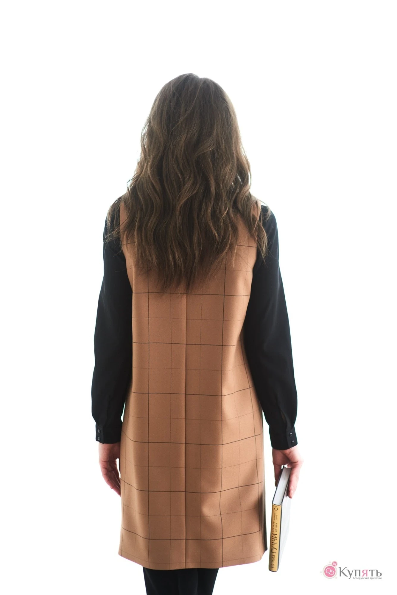 Комплект состоит из трех вещей. Жилет прямого силуэта на подкладке, с карманами в боковом шве. Длина жилета по спинке 89 см в 42ом размере, 91см в 48ом размере. Брюки классические 7/8. Длина брюк по боковому шву 87 см в 42ом размере, 90см - в 48ом размере.