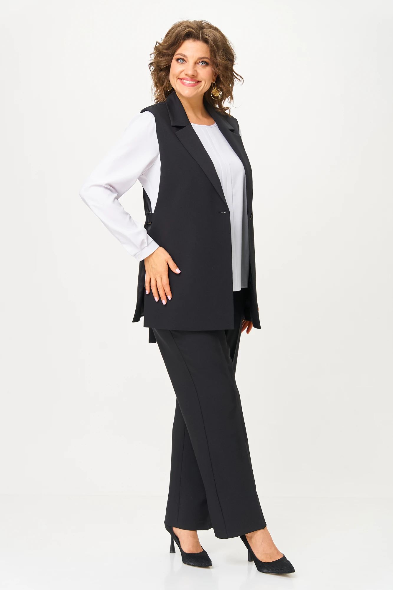 Брючный костюм Багряница 3172 тройка черный+белый