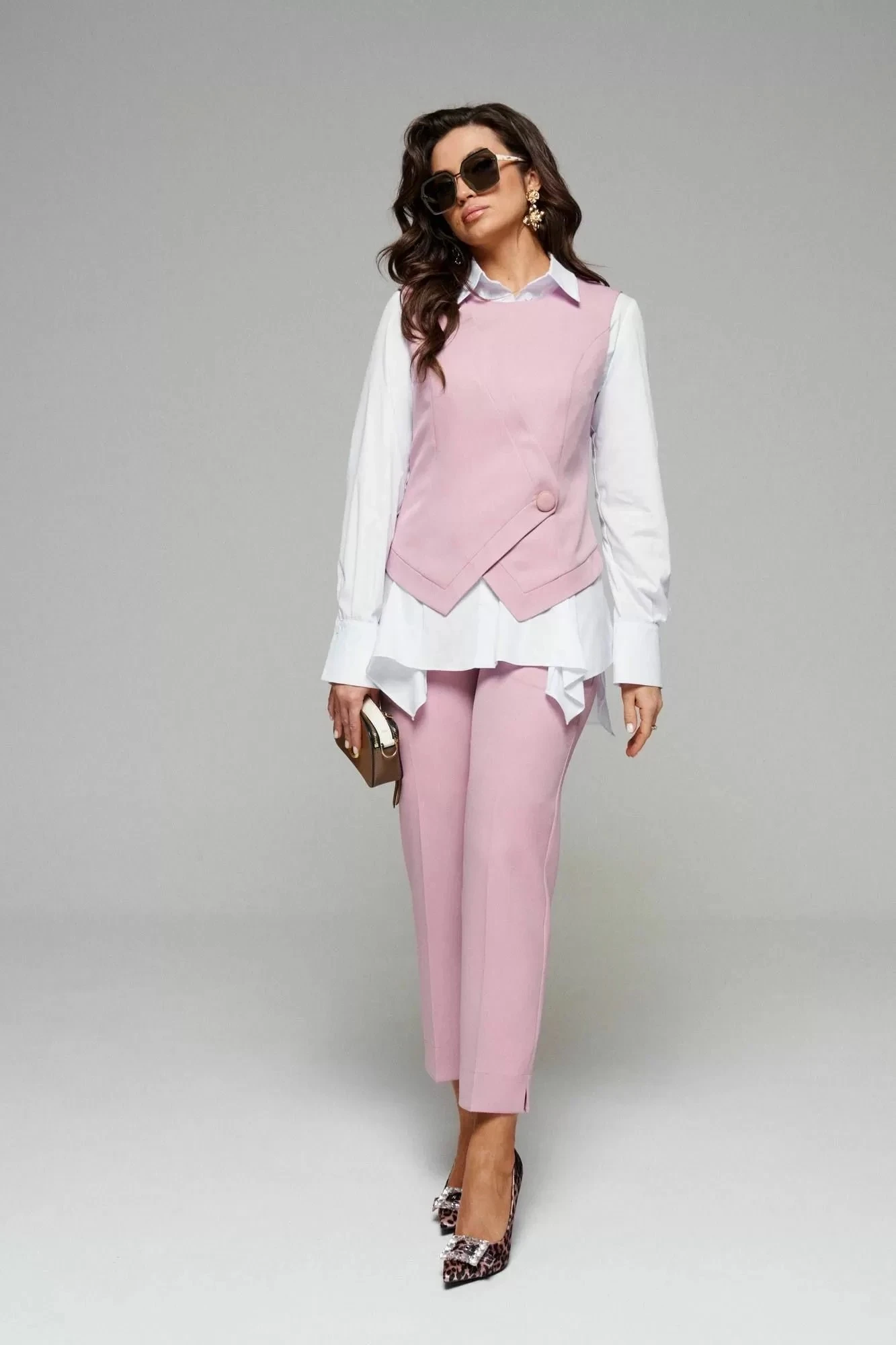 Деловой комплект 3-ка, состоящий из трех элементов: блузки, брюк и жилета.
