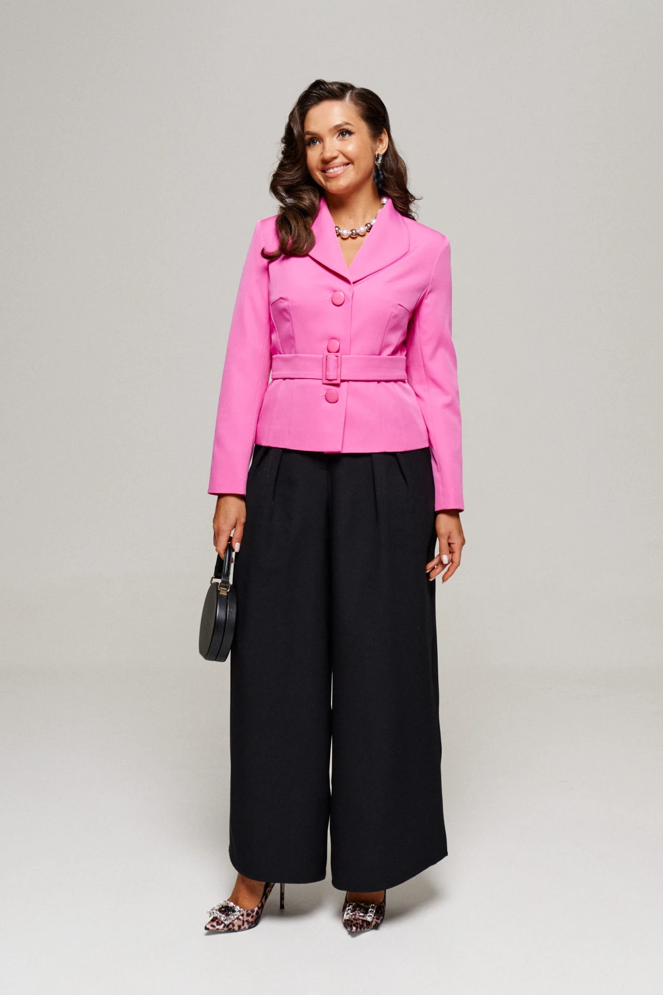 В качестве дополнительного декоративного элемента к жакету прилагается пояс на пряжке.