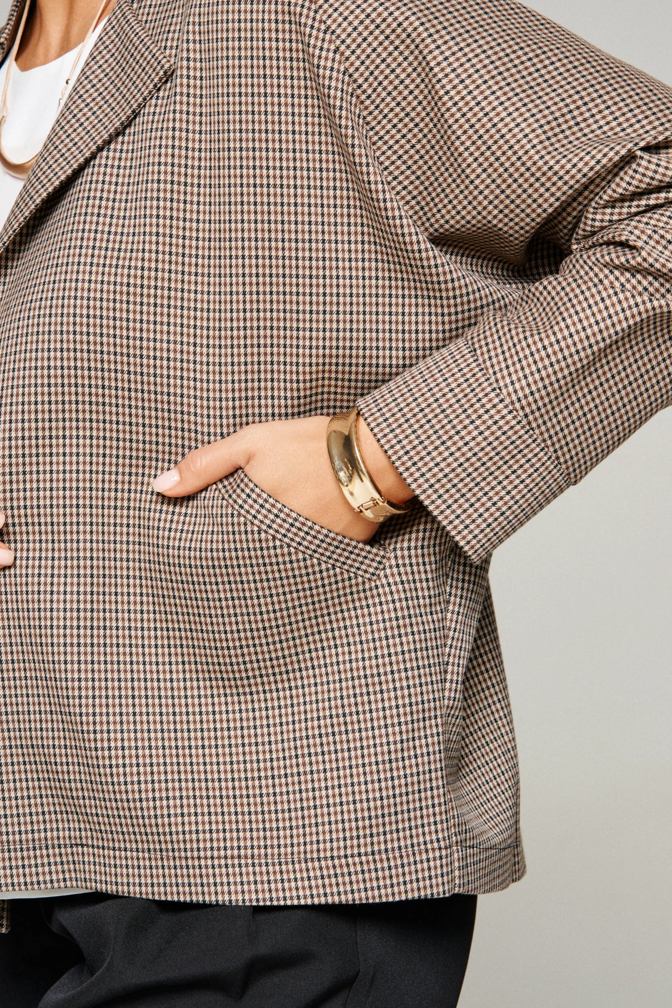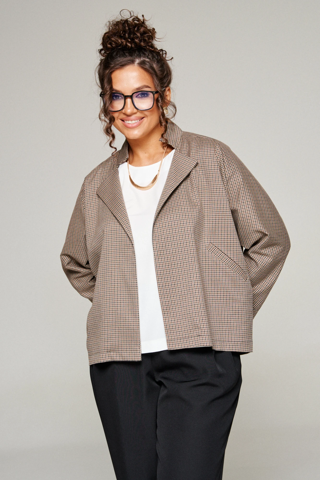 Брючный костюм Beautiful&Free 6345 клетка бежевая тройка
