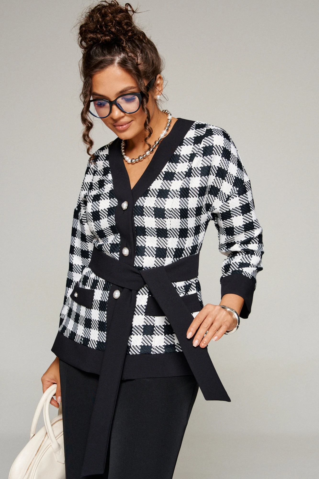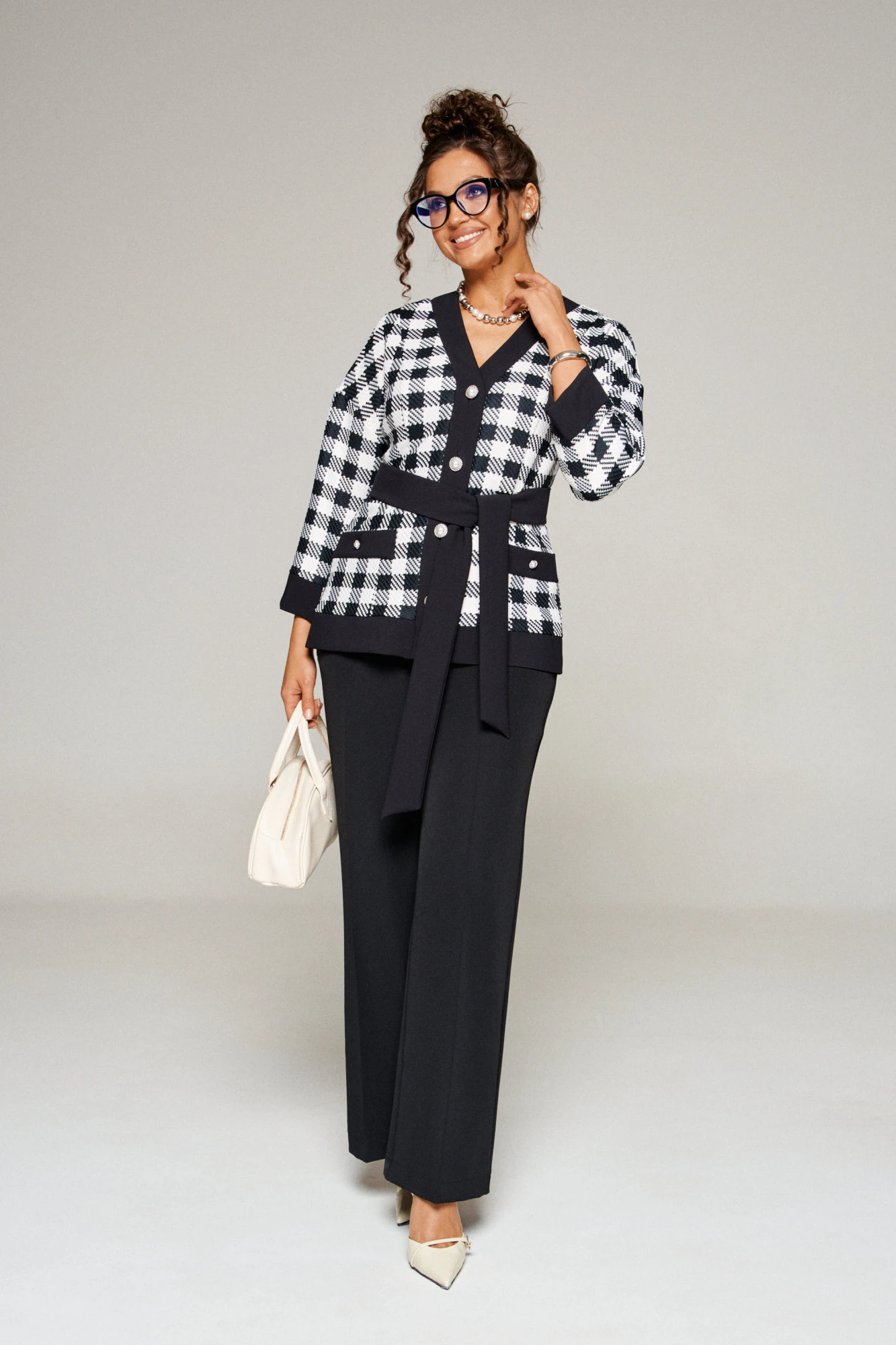 Брючный костюм Beautiful&Free 6352 клетка чёрно-белая двойка