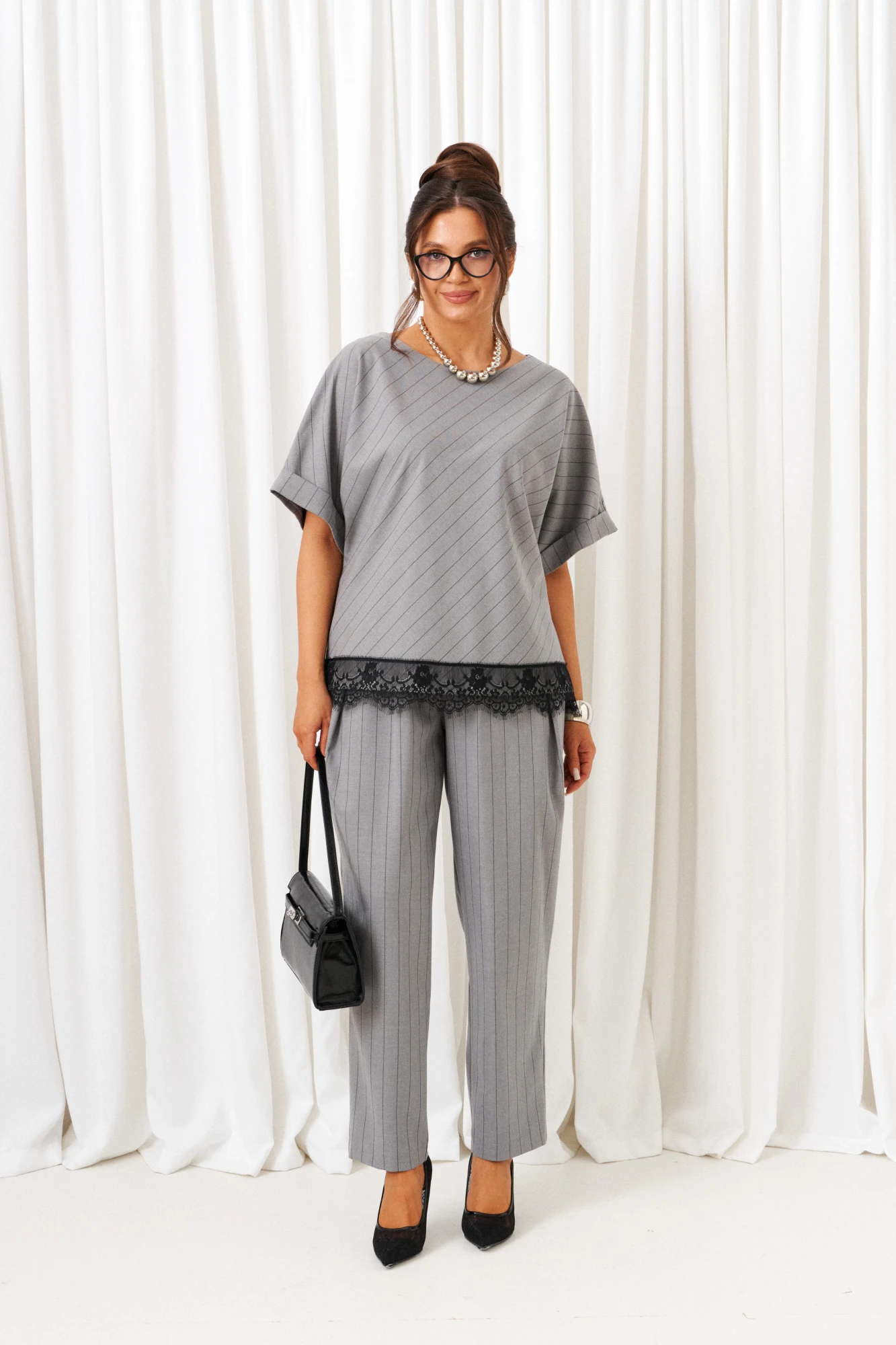 Брючный костюм Beautiful&Free 6442 светло-серый в полочку двойка