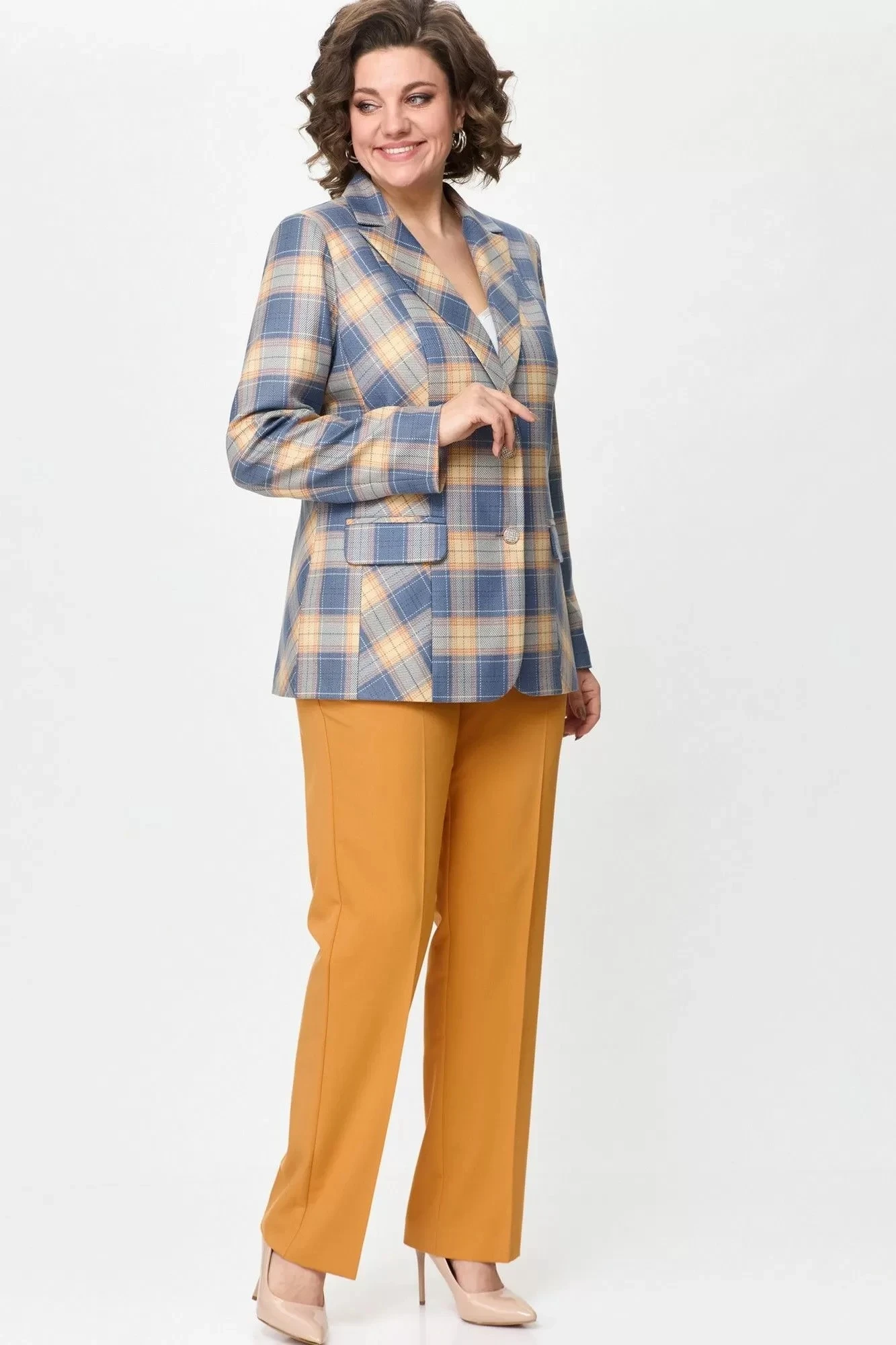 Брючный костюм из хлопка БелЭльСтиль 203+596 клетка+горчица