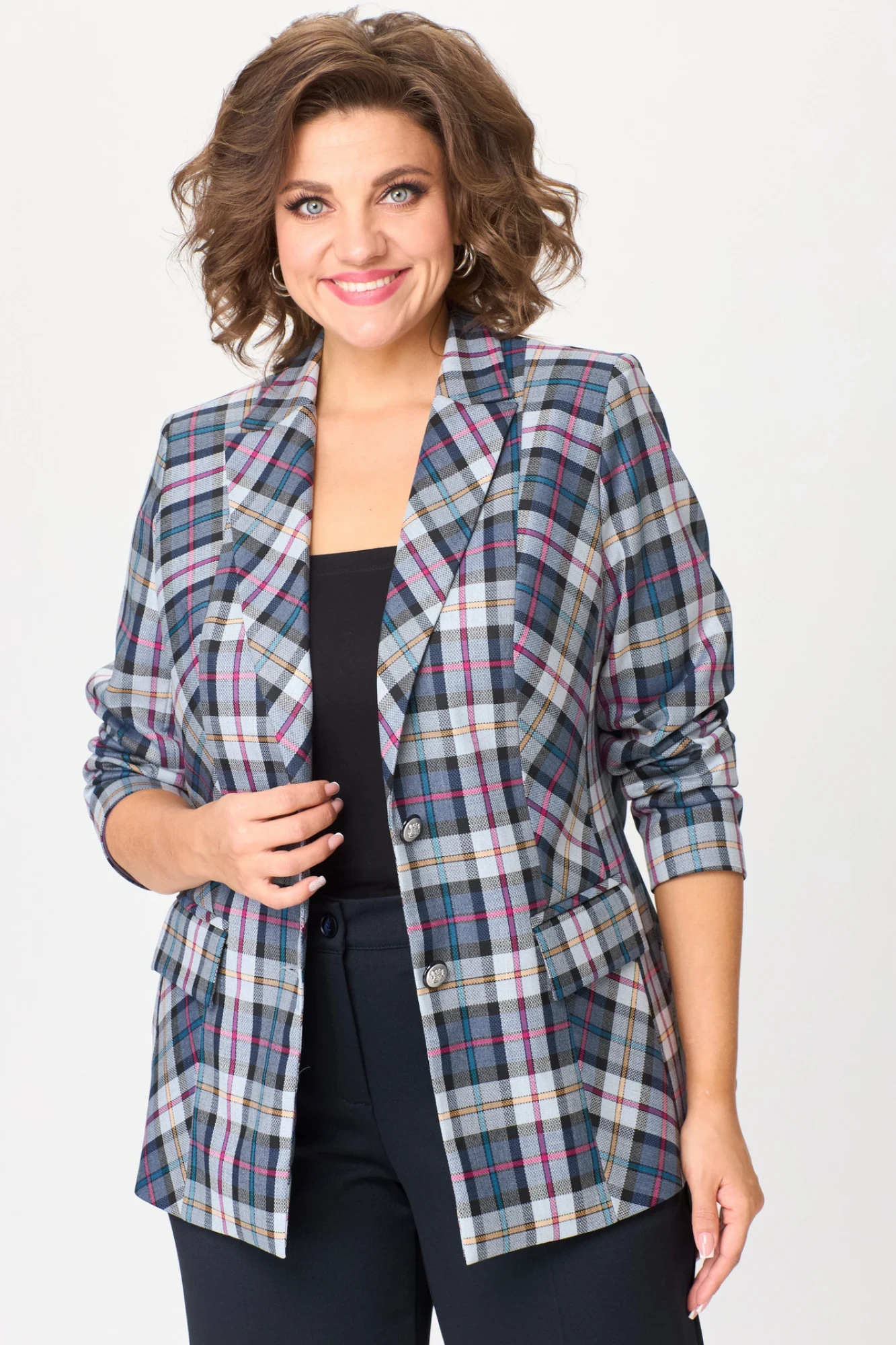 Брючный костюм БелЭльСтиль 412+601 синяя клетка + синий однотон