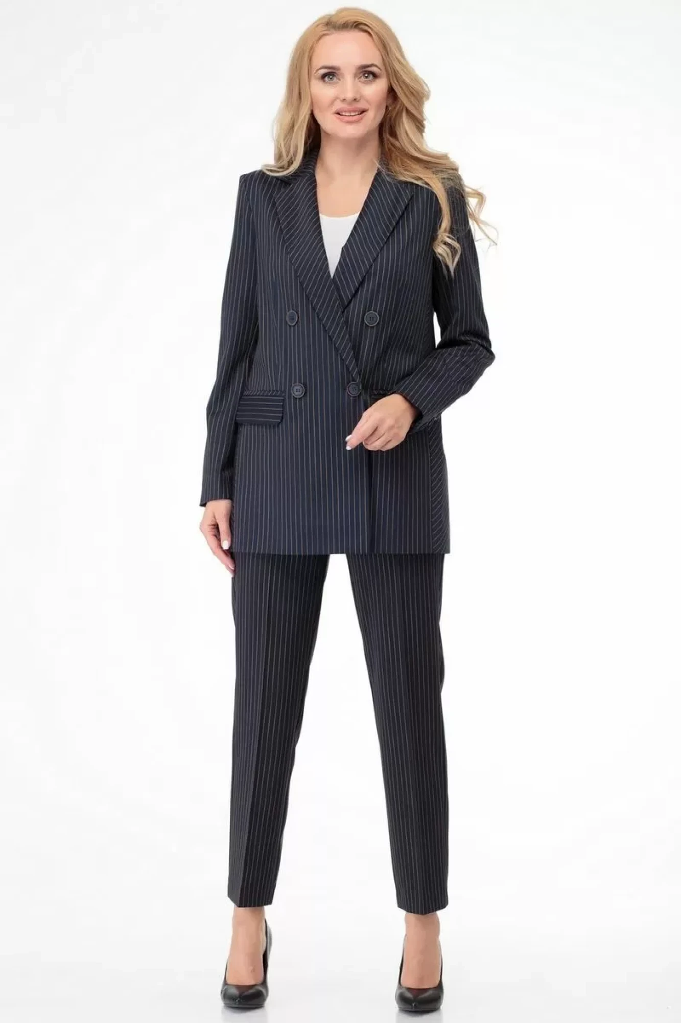 Брючный костюм БелЭльСтиль 785+596 двойка т.синяя полоска