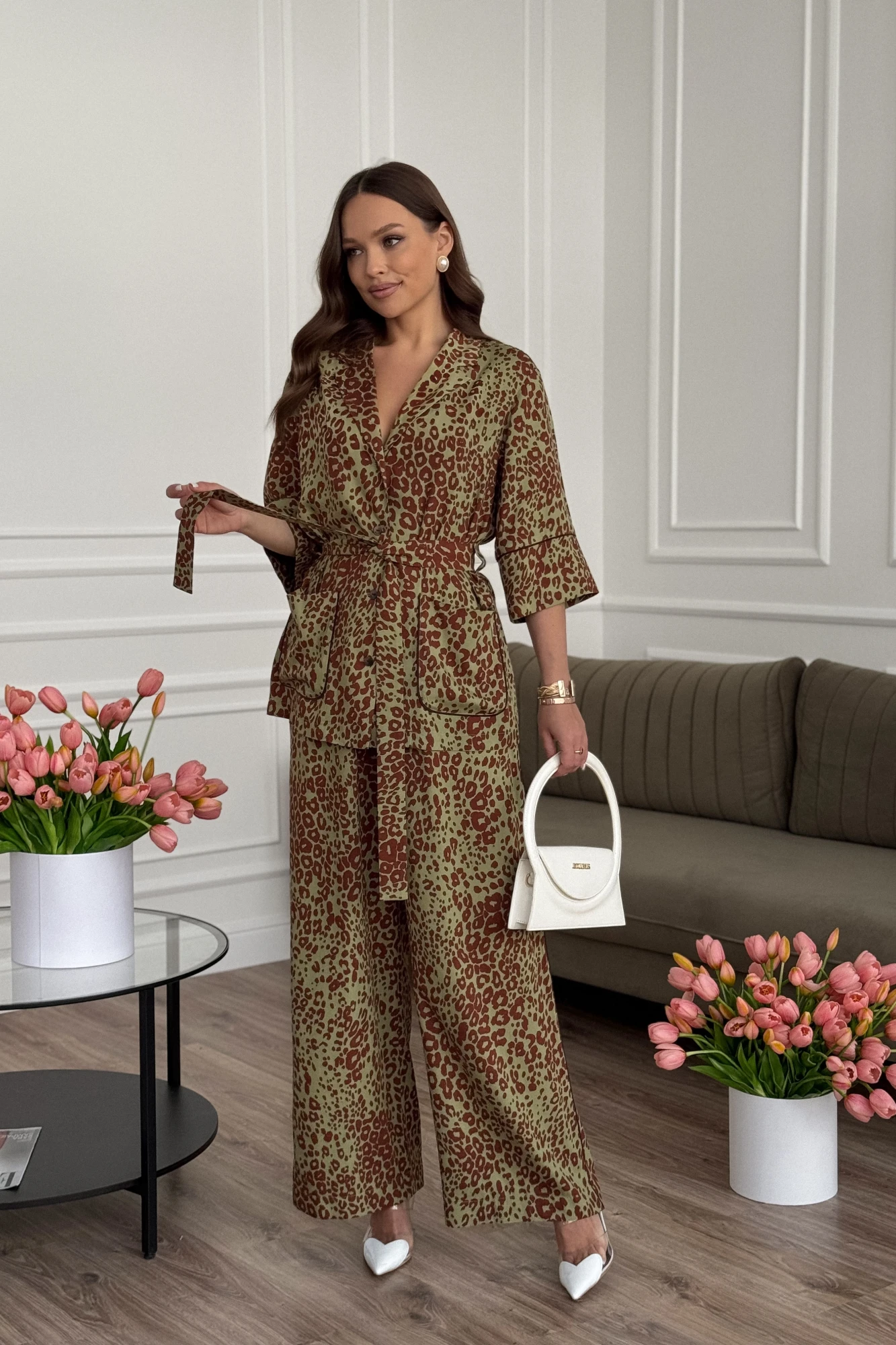 Брючный костюм DilanaVIP 2092 леопардовый принт двойка