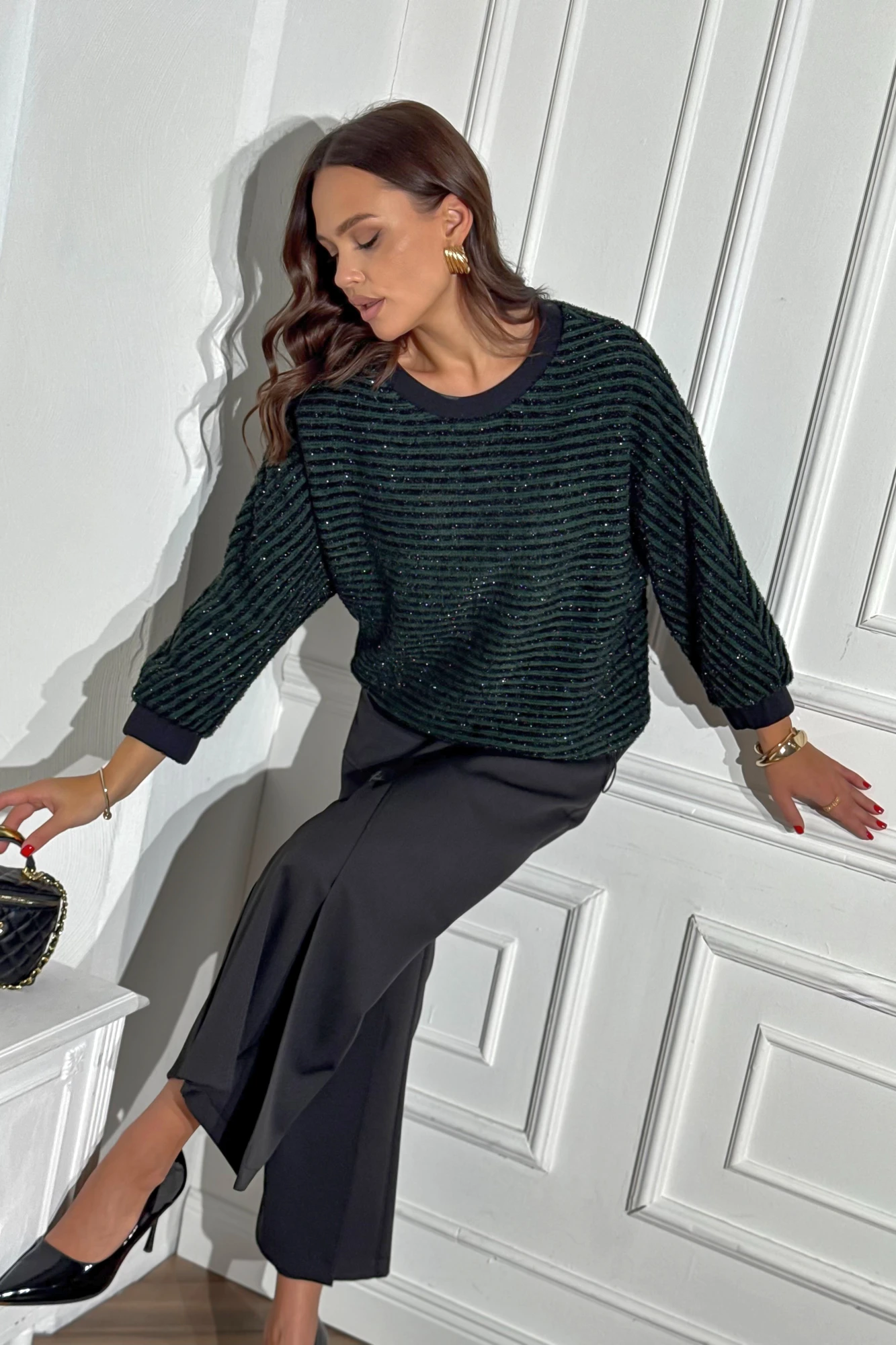 Брючный костюм DilanaVIP 2124 зеленый/черный двойка