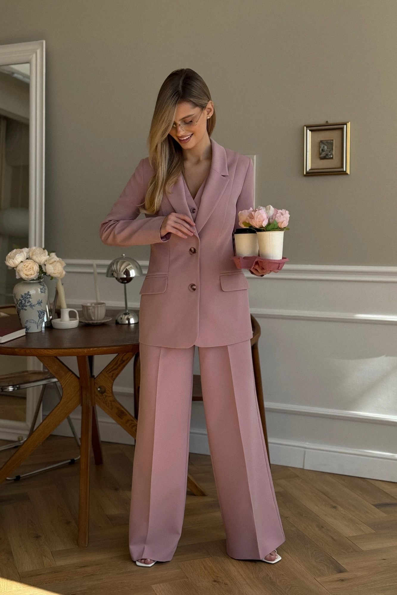 Брючный костюм DilanaVIP М-1993 пудра тройка
