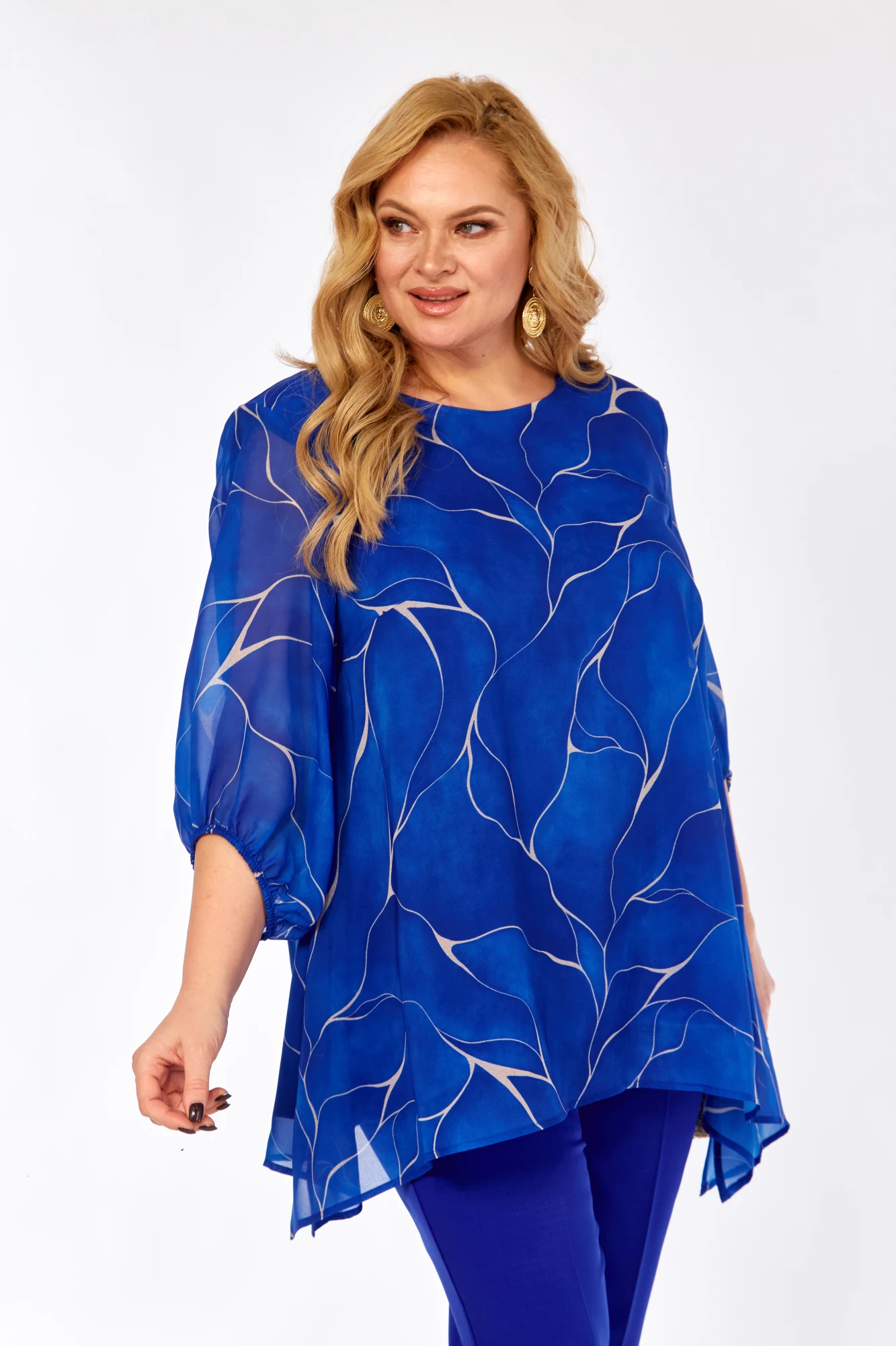 Брючный комплект предназначен для элегантных женщин. Блуза сводного кроя из принтованного шифона, что придает уникальность стилю своими красками. На полочке нагрудные вытачки, вырез горловины аккуратной округлой формы. Рукав втачной, свободный, низ присборен. Брюки слегка зауженные к низу. Пояс притачной, частично на резинке.
