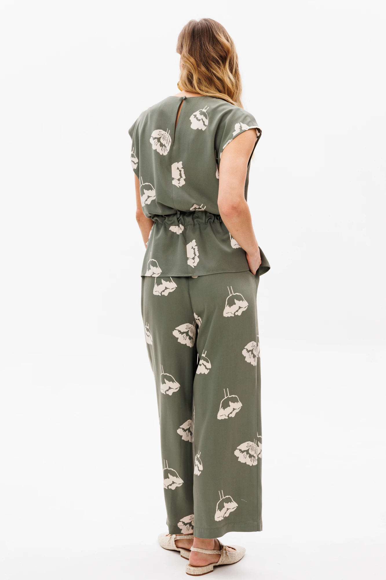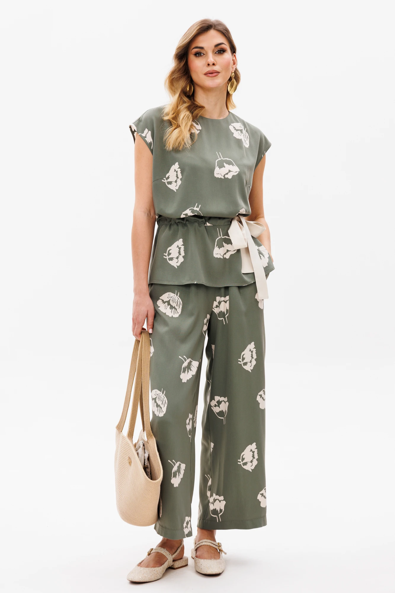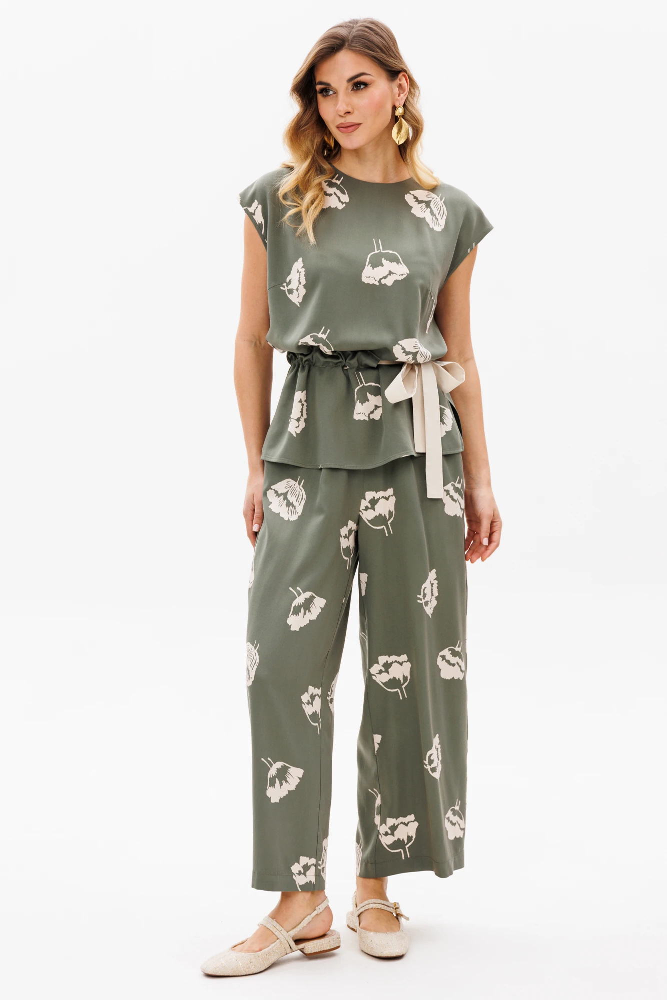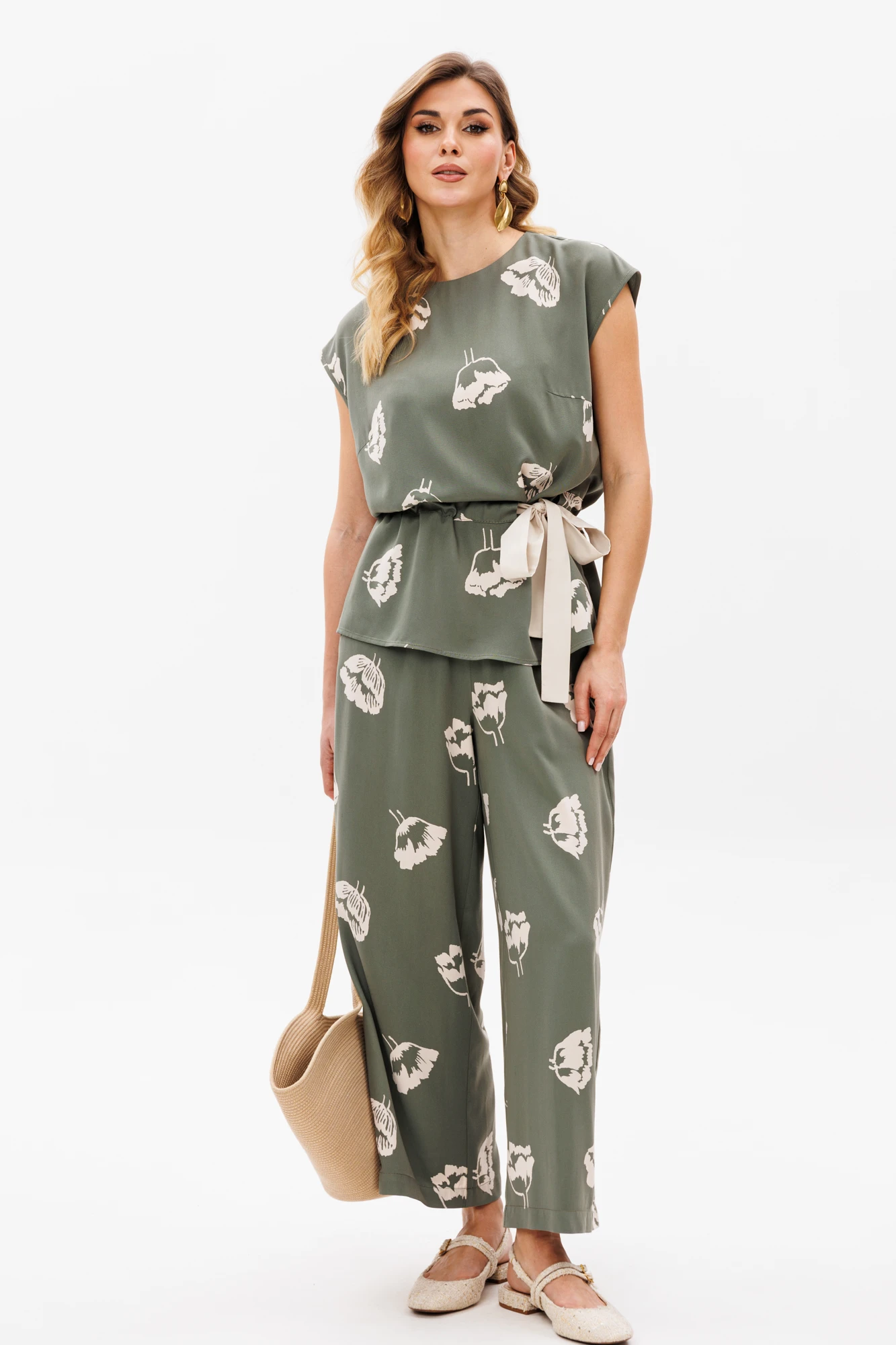 Брючный костюм EOLA 2829 олива с принтом двойка