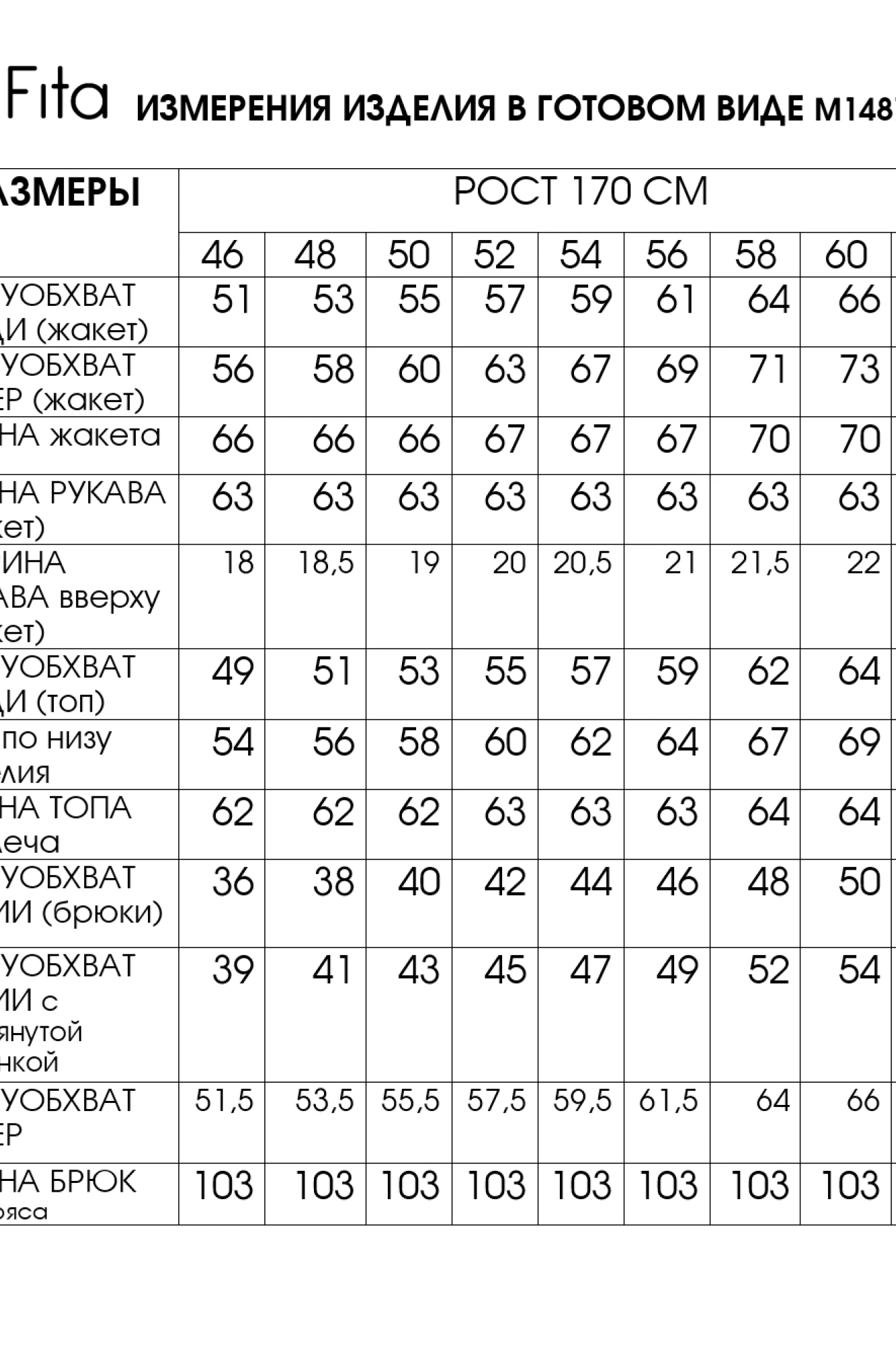 жакет: 60% вискоза, 36% полиамид 4% спандекс; брюки и блузка: 70% полиэстер, 30% вискоза.