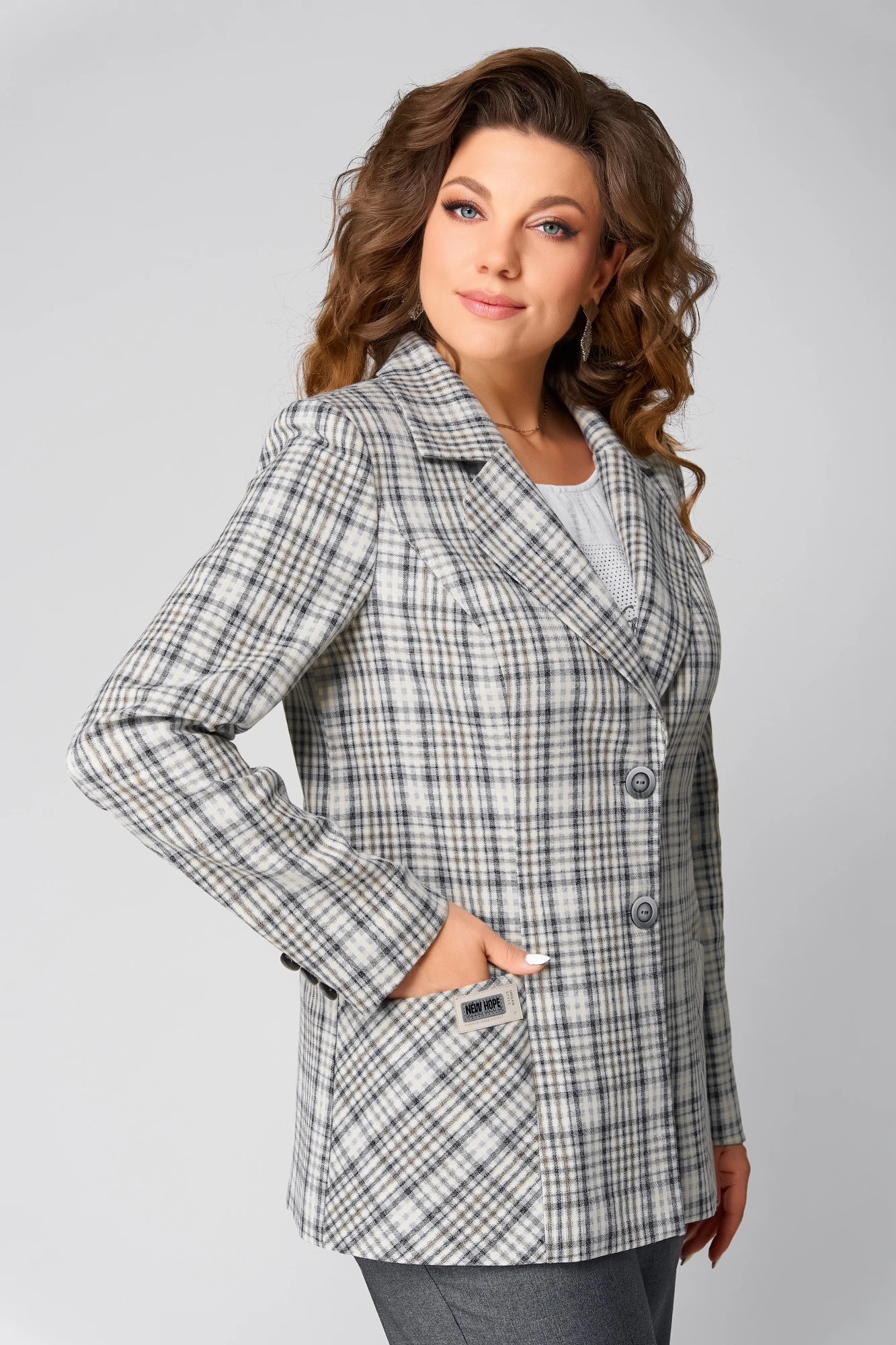 Жакет прямого силуэта на подкладке — воплощение сдержанной роскоши. Его однобортная застежка с отложными лацканами придает образу деловую точность, а прорезной карман и двухшовный рукав подчеркивают внимание к деталям. Средний шов на спинке завершает композицию архитектурной строгостью.