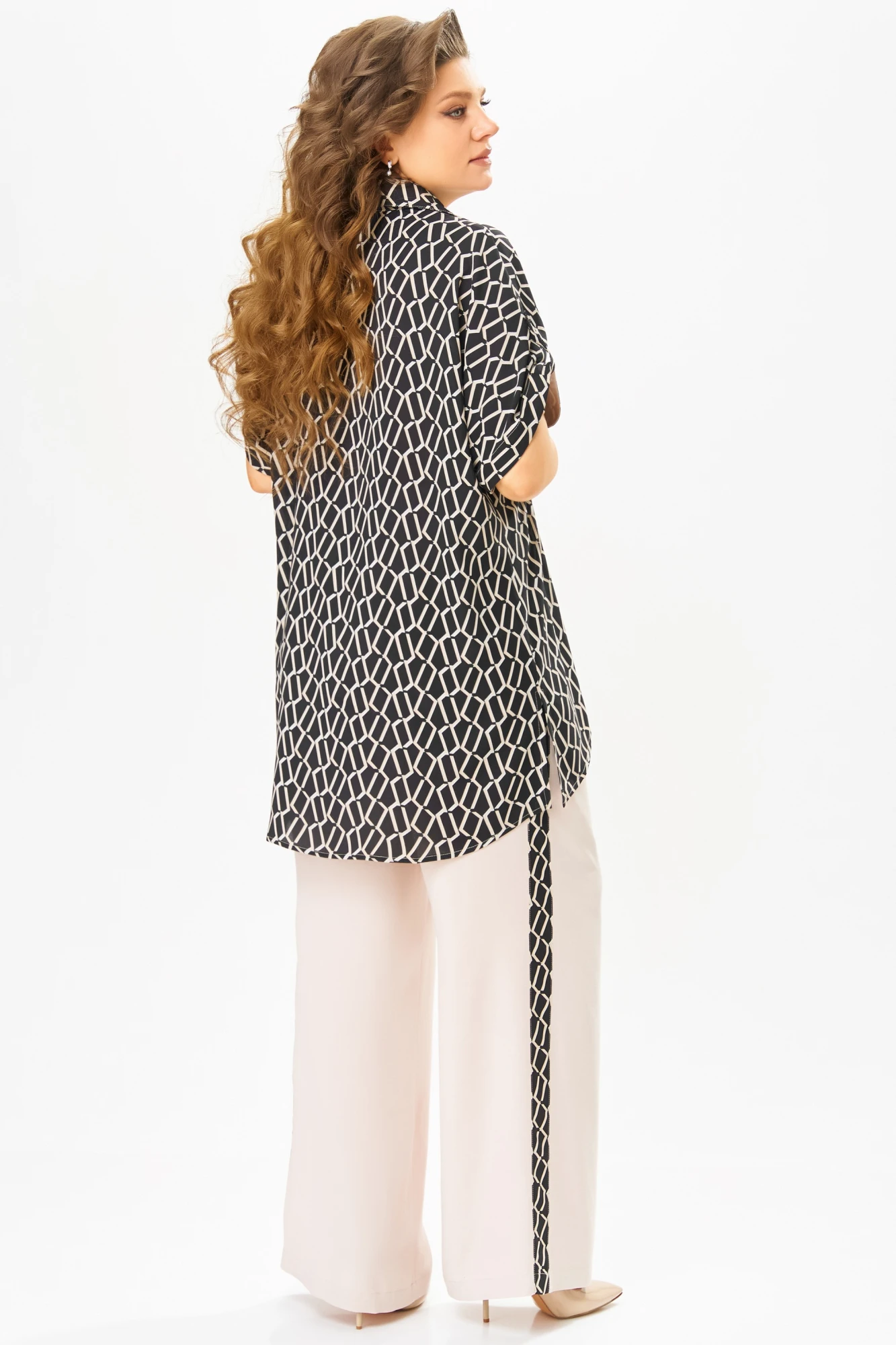 Брючный костюм FITA 3071 черно-бежевый двойка