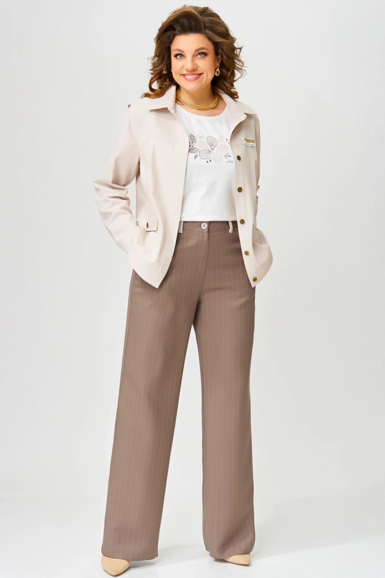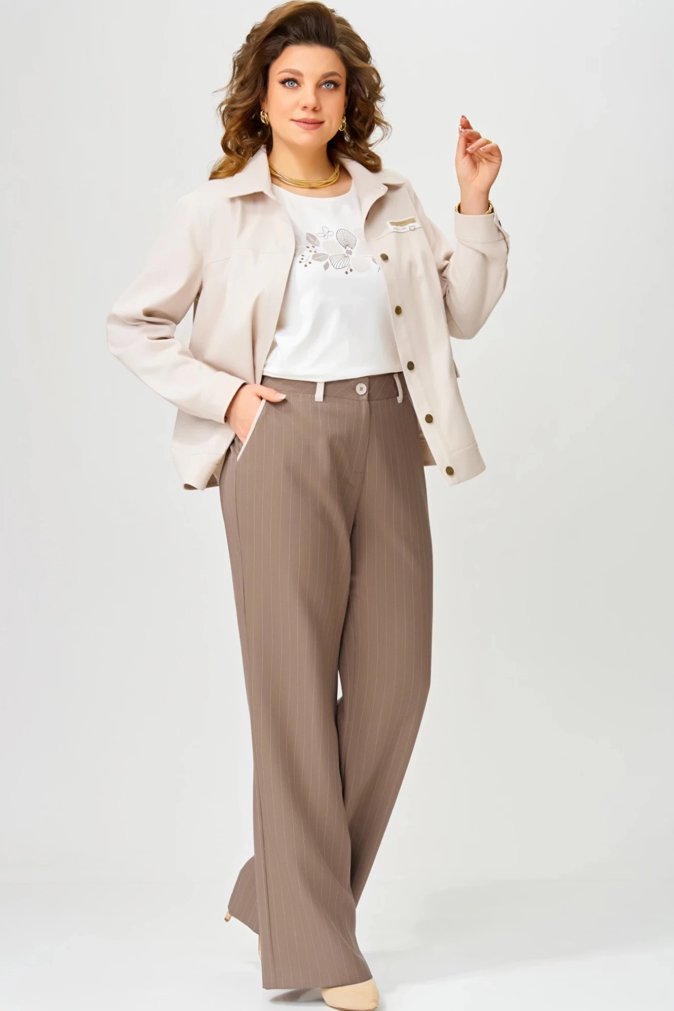 Брючный костюм FITA 4021 бежево-коричневый тройка