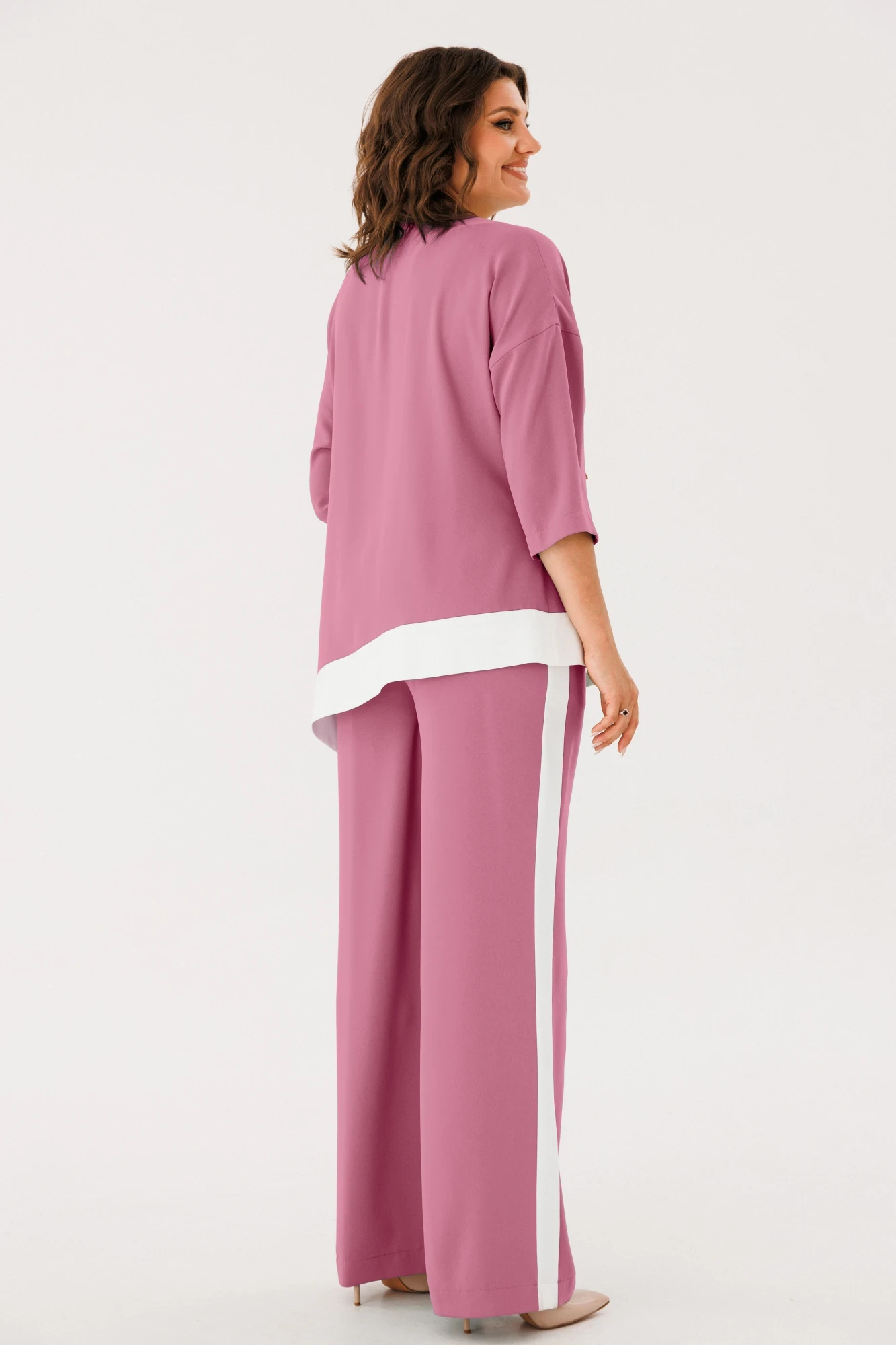Блуза свободного силуэта, вырез горловины округлый, рукав со спущенной проймой, длинной 3/4. Низ изделия ассиметричный с отделкой другого оттенка. Блуза без застежки.