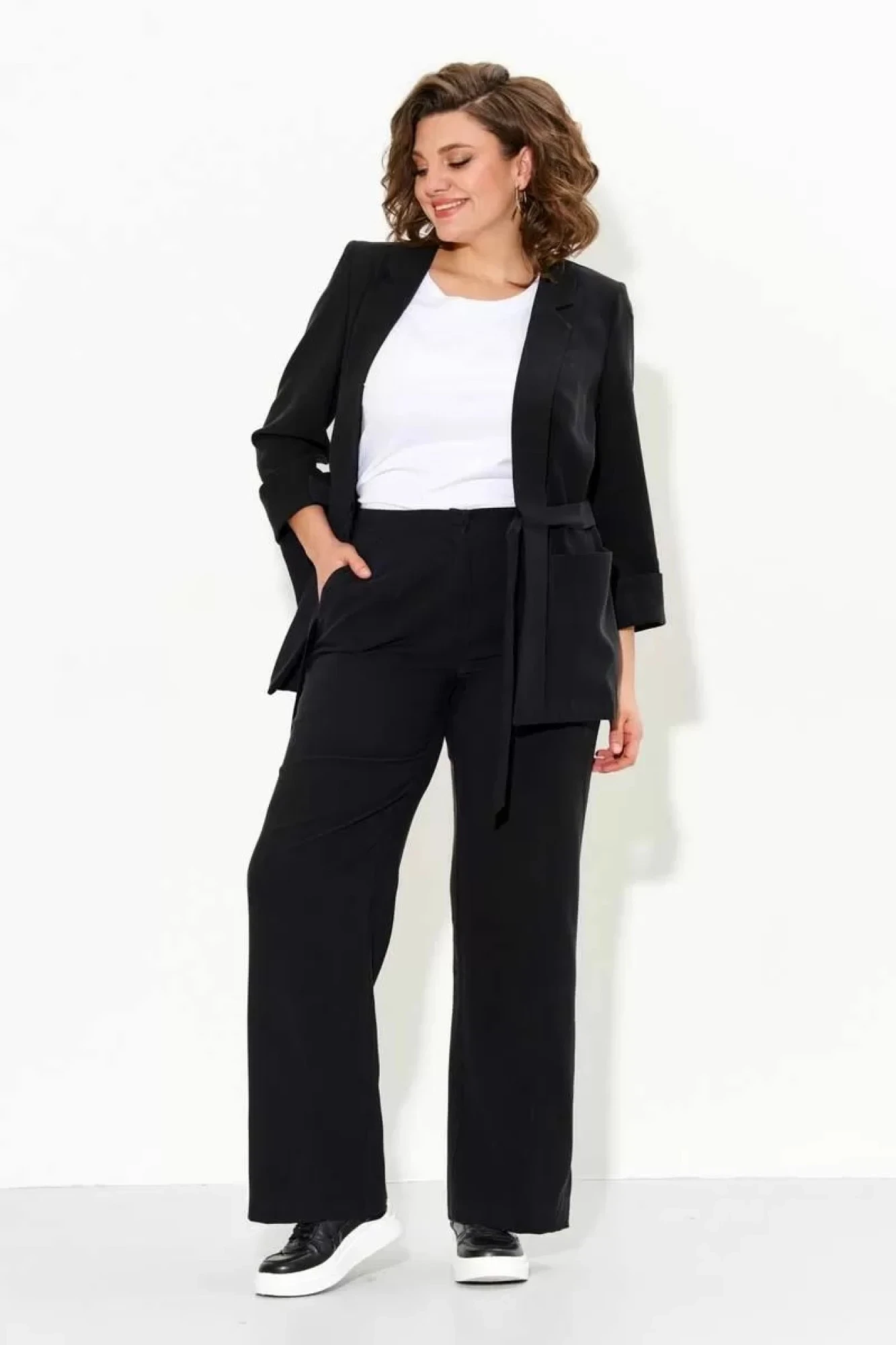 Костюм женский с брюками и жакетом выполнен из легкой натуральной ткани тенсель, максимально комфортной для теплой погоды. Жакет полуприлегающего силуэта без подкладки со втачными рукавами с манжетами, по переду накладные карманы, в боковые швы вставлен функциональный пояс-завязка, воротник пиджачного типа. Брюки прямого силуэта с притачным поясом на резинке по бокам, застежка на молнию, петлю и пуговицу. На фото костюм отснят с базовым топом бренда FOXY FOX (артикул 1334).