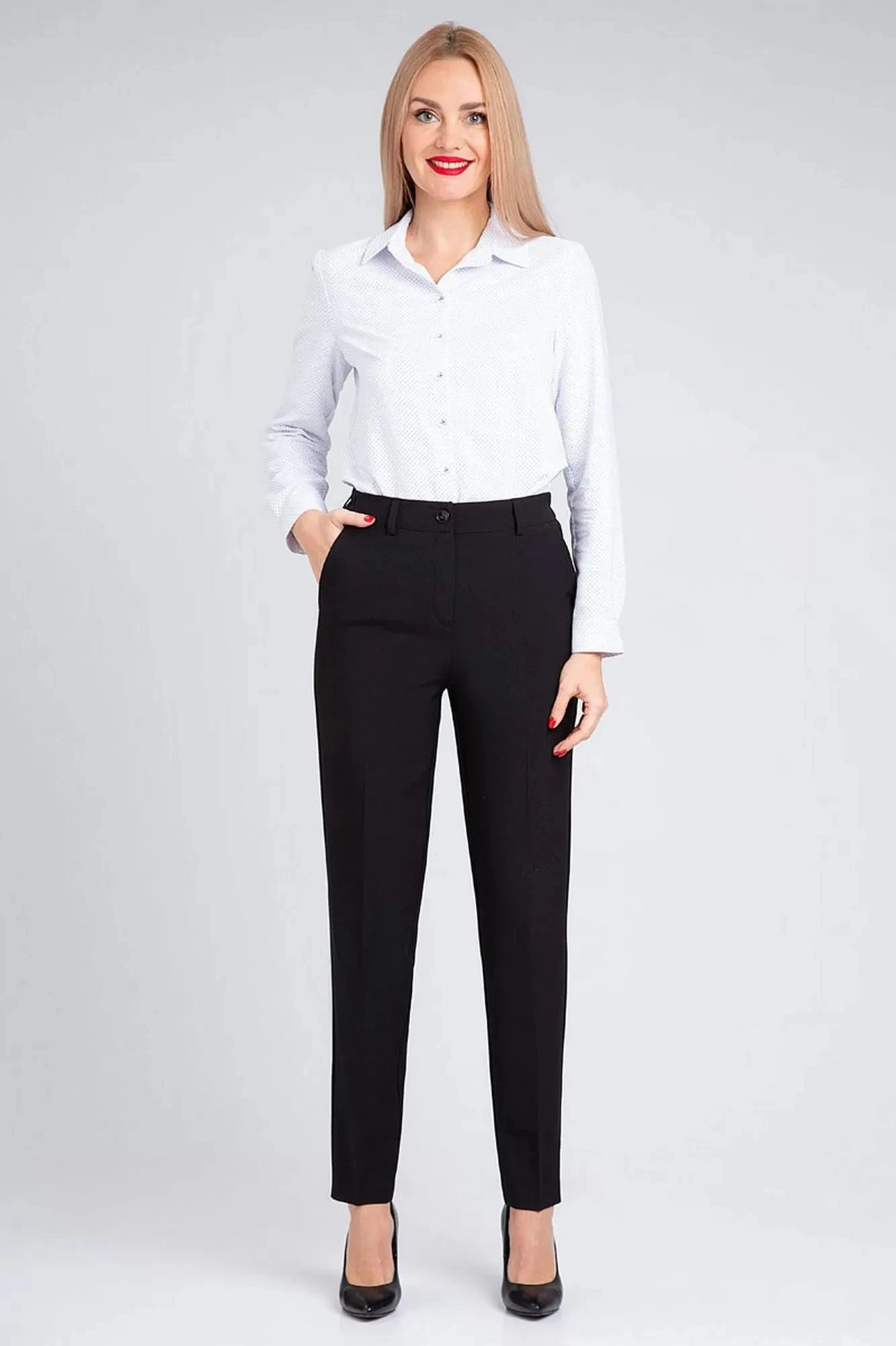 Классические брюки со стрелками, заужены к низу. Высокая посадка на талии.